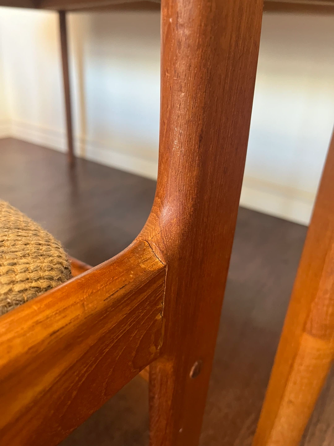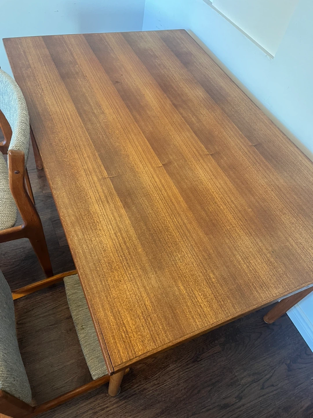 I just polished the set with orange oil. There are some marks and discolouration on the tabletop. Table TOP is not teak wood. Looks like veneer on pine (or similar?). See photos.