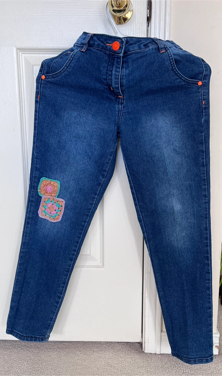 Faded Glory Jeans with Crochet Patches - Kids size 10-12.