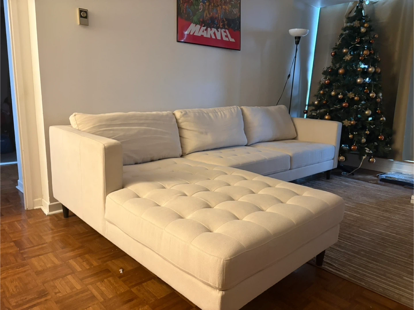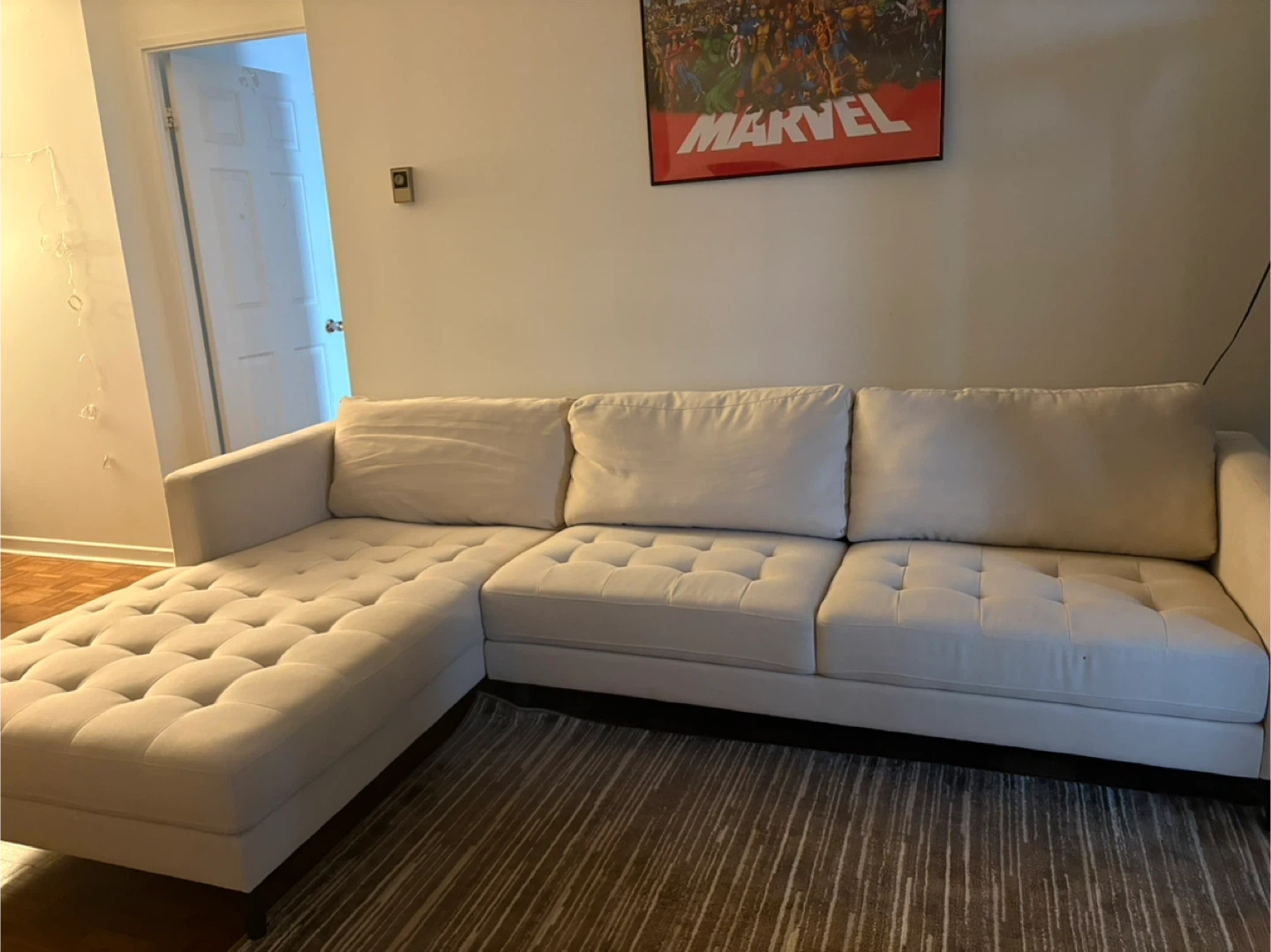 Selling a comfy sectional sofa! From the Brick. It's in great condition and would be perfect for a living room or den. The neutral beige colour will match any decor. It has a chaise lounge on one end for ultimate relaxation