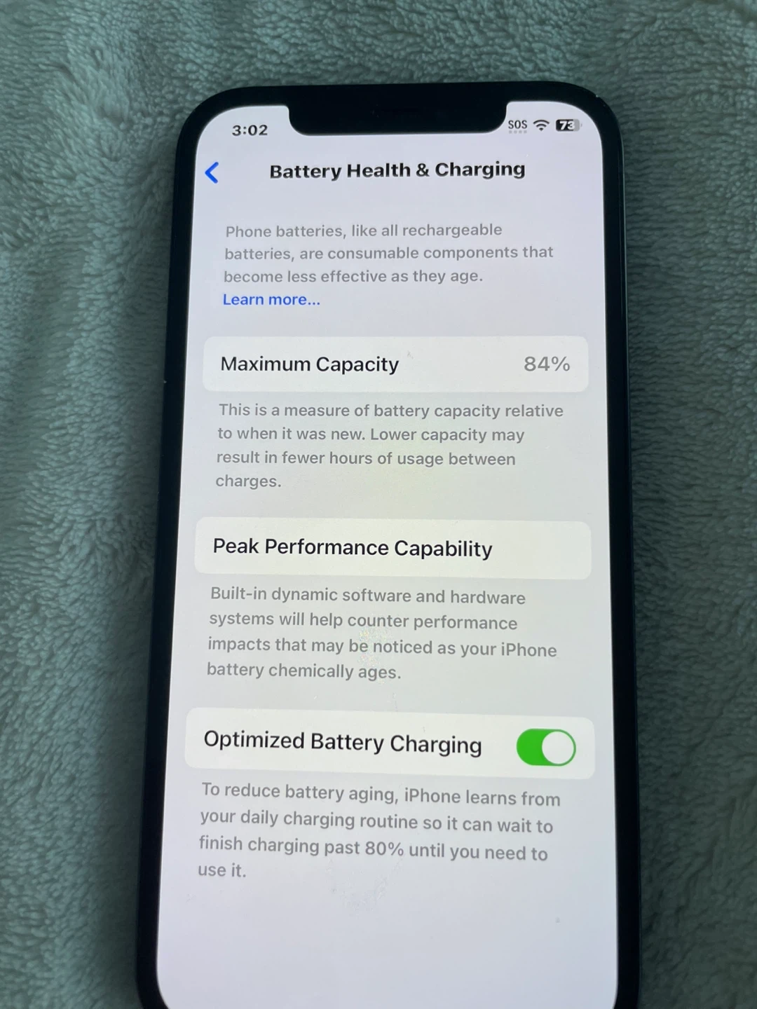 The battery health is at 84%.