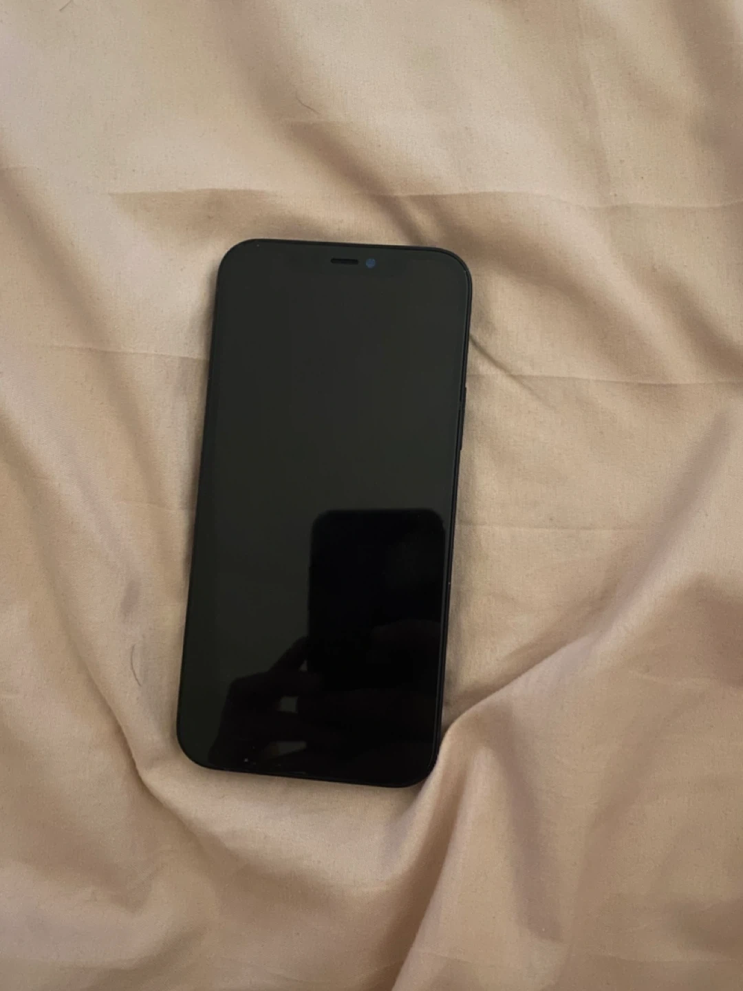 Selling a black iPhone 12. Very minor scratches on the sides. Screen is not cracked, but the display is not working. Screen stays black and shows lines when powered on. Phone turns on but needs a screen replacement. Price is negotiable. Willing to trade.