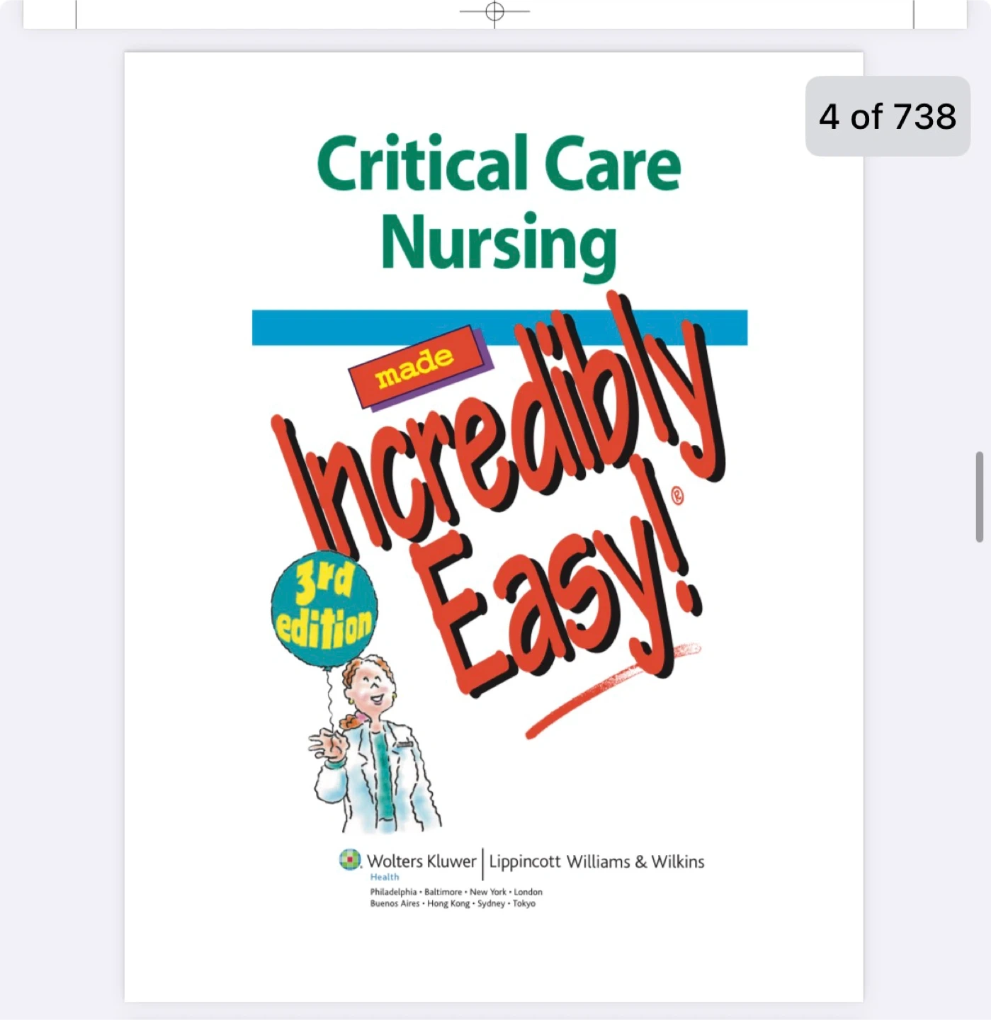 FREE PDF copy of "Critical Care Nursing Made Incredibly Easy!" 3rd edition. It's a helpful resource for understanding critical care basics, holistic care issues, and various body systems like neurologic, cardiovascular, and respiratory