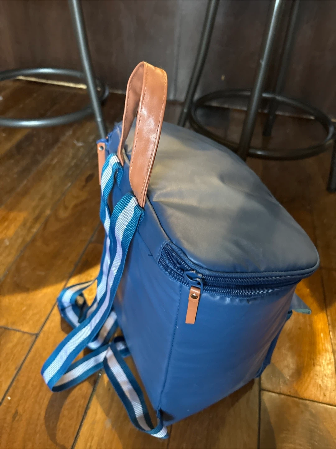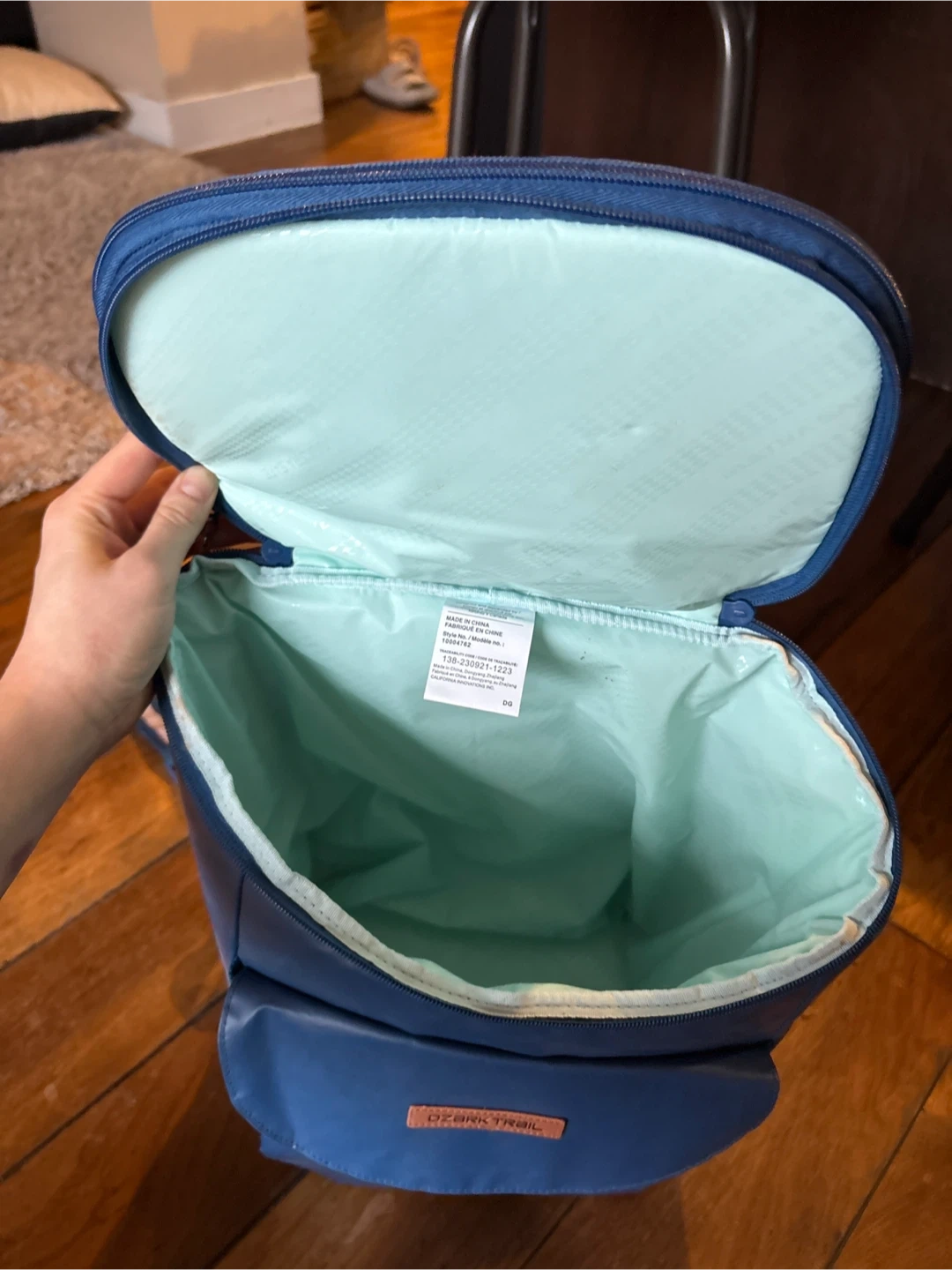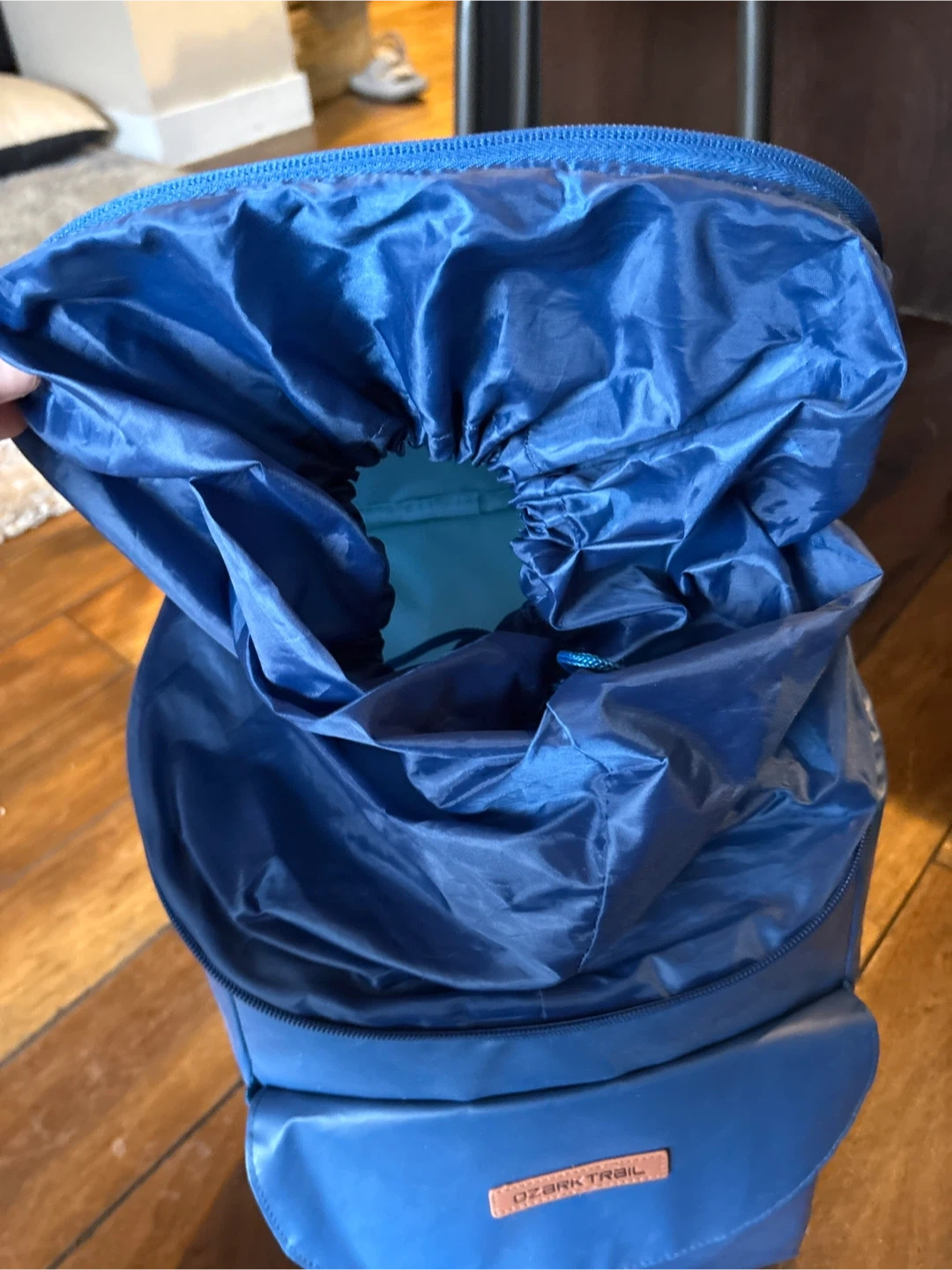 Check out this Ozark Trail cooler backpack! It's in great shape and ready for your next picnic or outdoor adventure. The blue colour is really nice, and it's super practical for keeping your drinks and snacks cool on the go