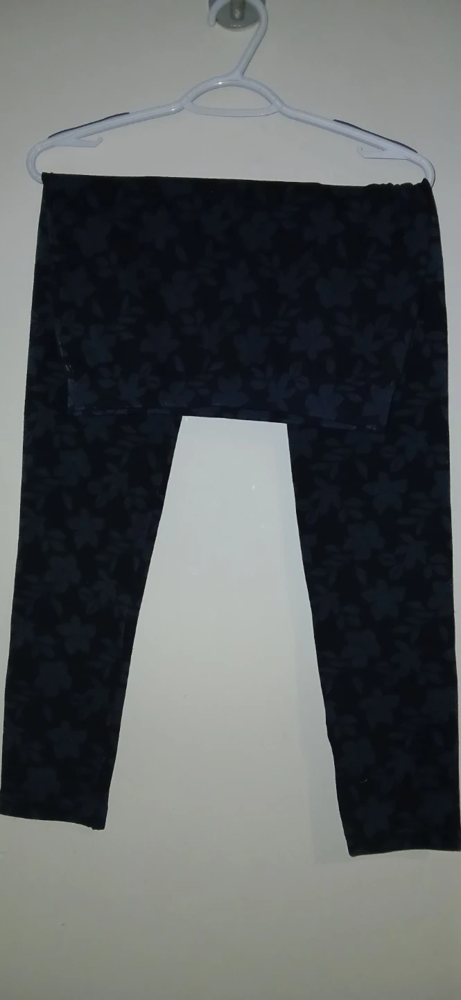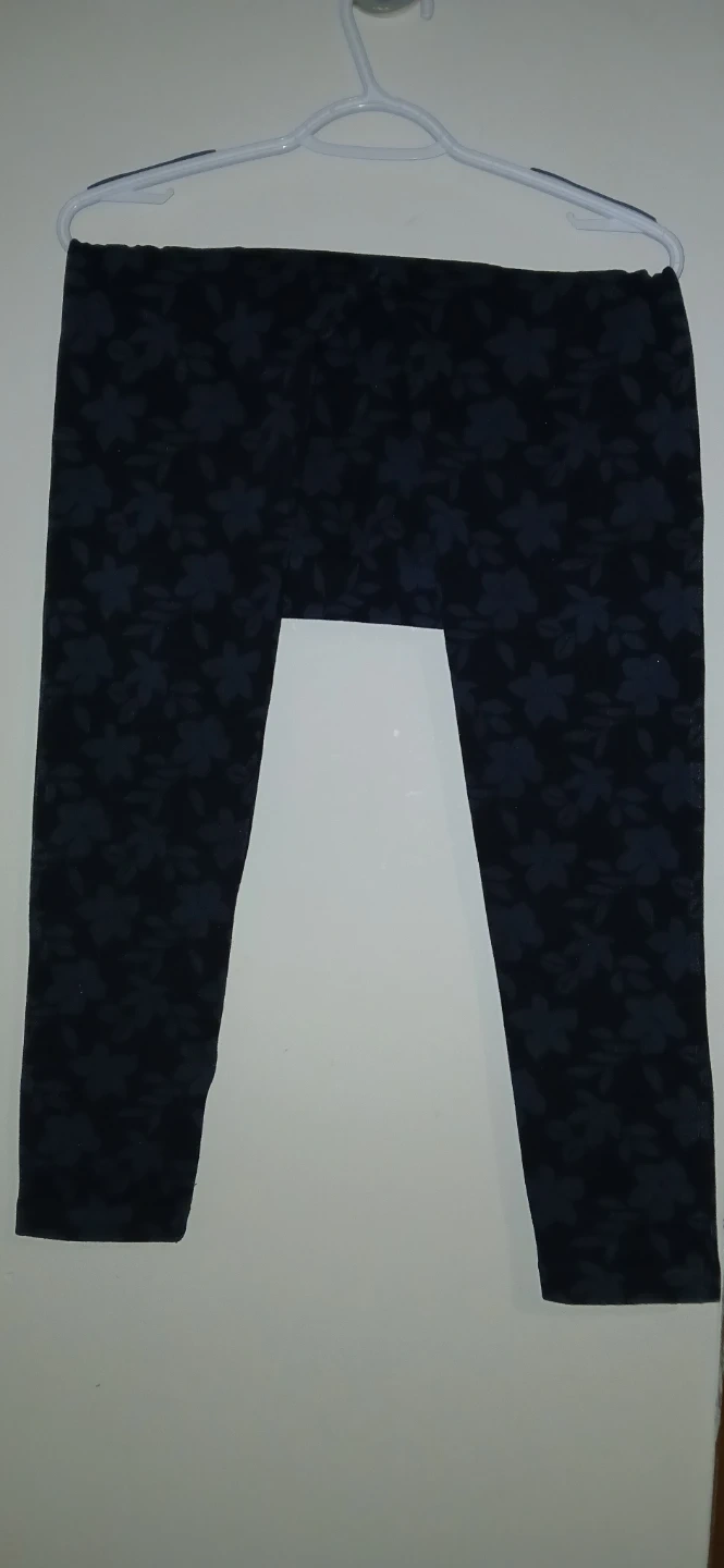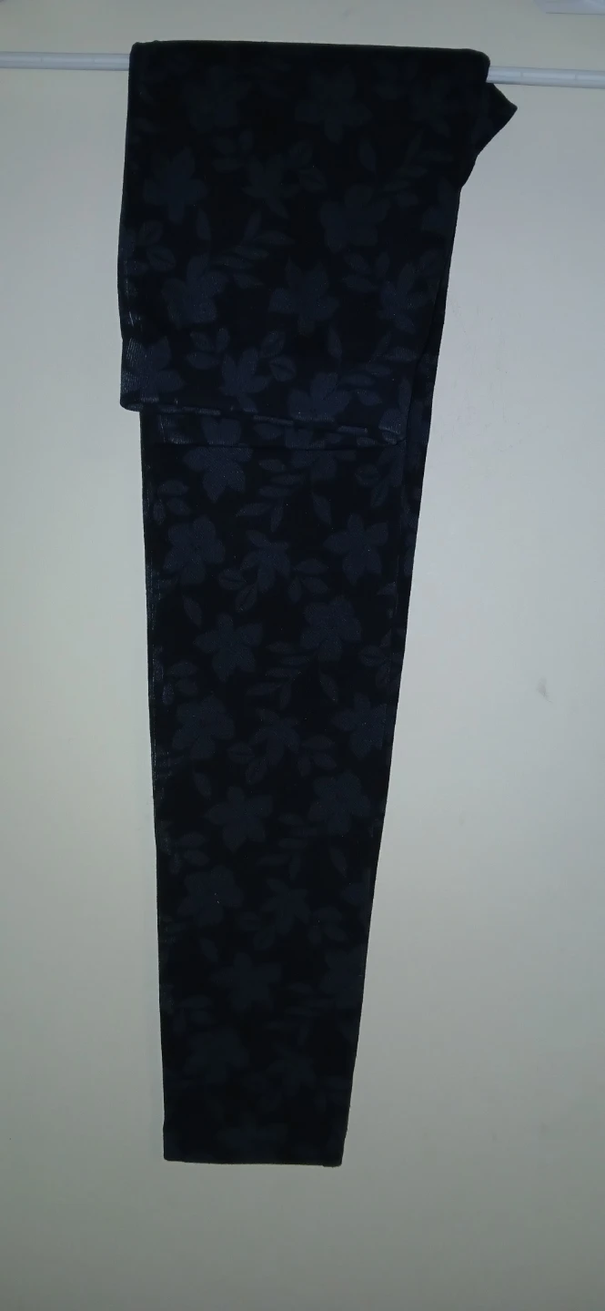 These are a nice pair of leggings with a floral pattern in black. The size isn't marked, so please check the measurements in the photos to see if they'll fit you. They're in great condition!