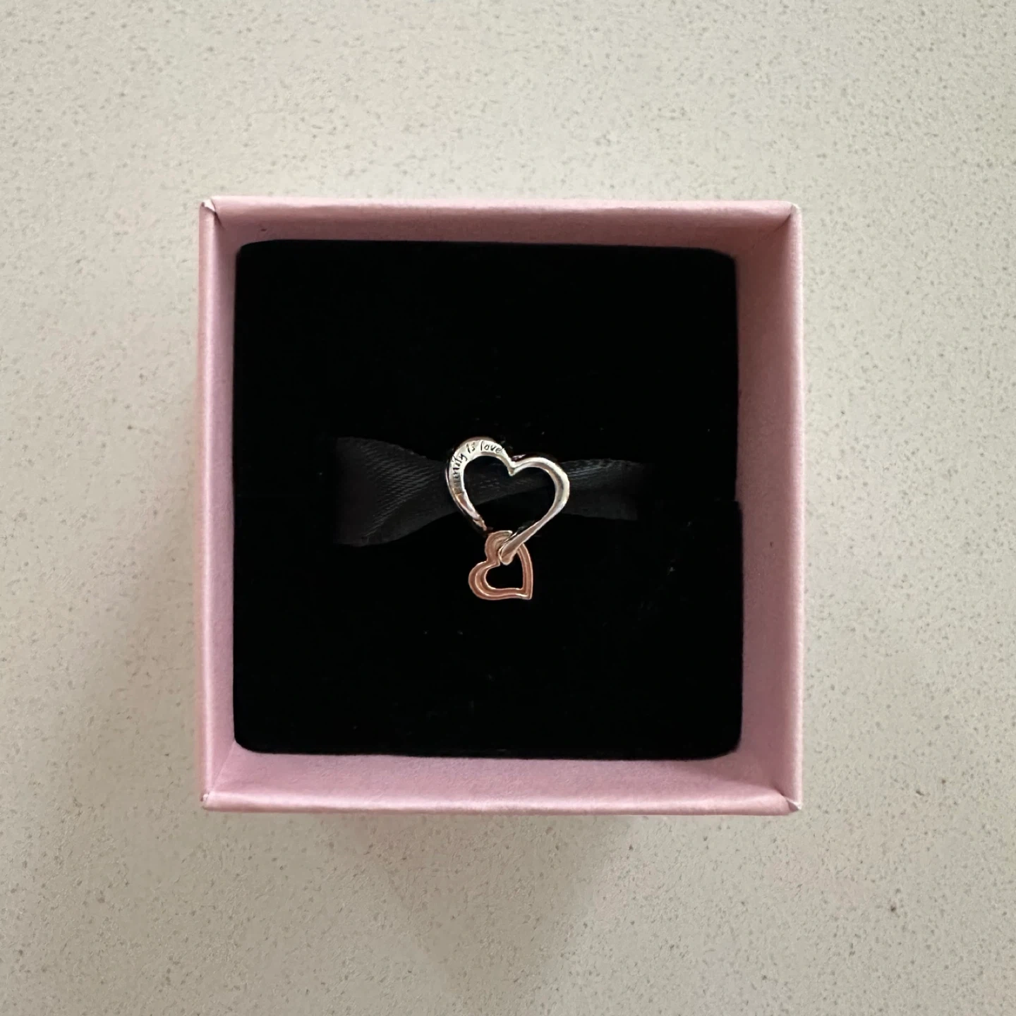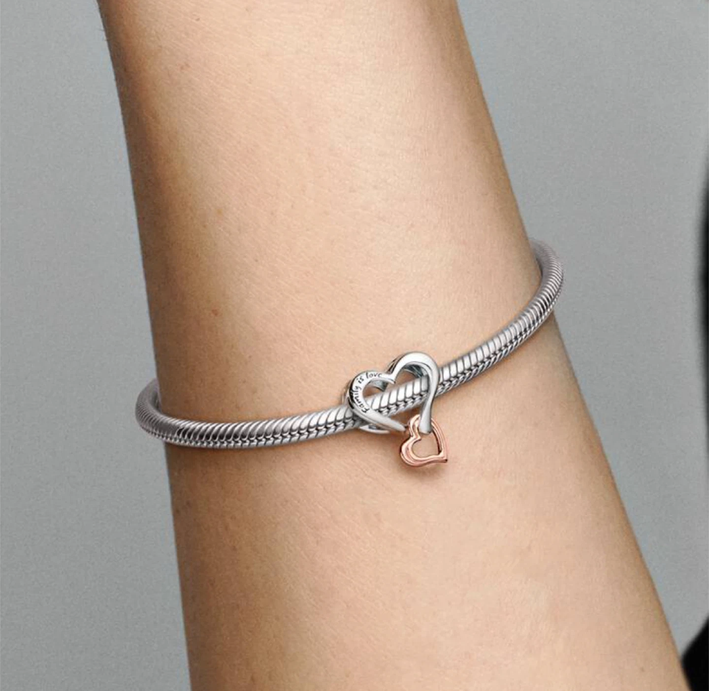 Brand new (never been worn or taken out of the box) two-tone Openwork Infinity Heart Charm from Pandora. Sterling silver and 14k Rose gold-plated unique metal blend.