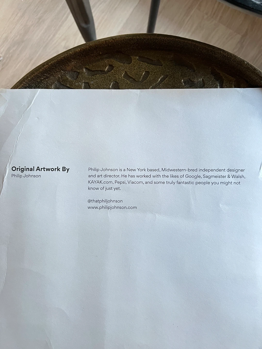 Free art print. Original artwork by Philip Johnson, a New York based, Midwestern-bred independent designer and art director. He has worked with the likes of Google, Sagmeister & Walsh, KAYAK.com, Pepsi, Viacom, and some truly fantastic people you might not know of just yet