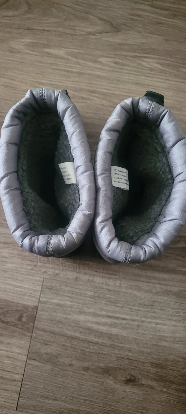 These kids' winter boots are in great shape and ready for some snowy adventures! They're size 3 and feature a sturdy black sole with a grey upper, accented with blue trim. Perfect for keeping little feet warm and dry this winter season