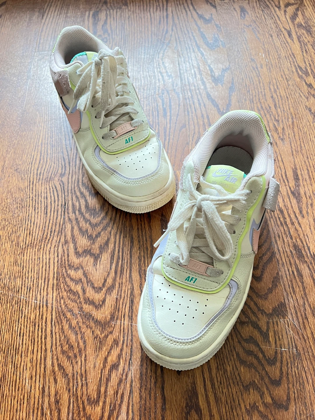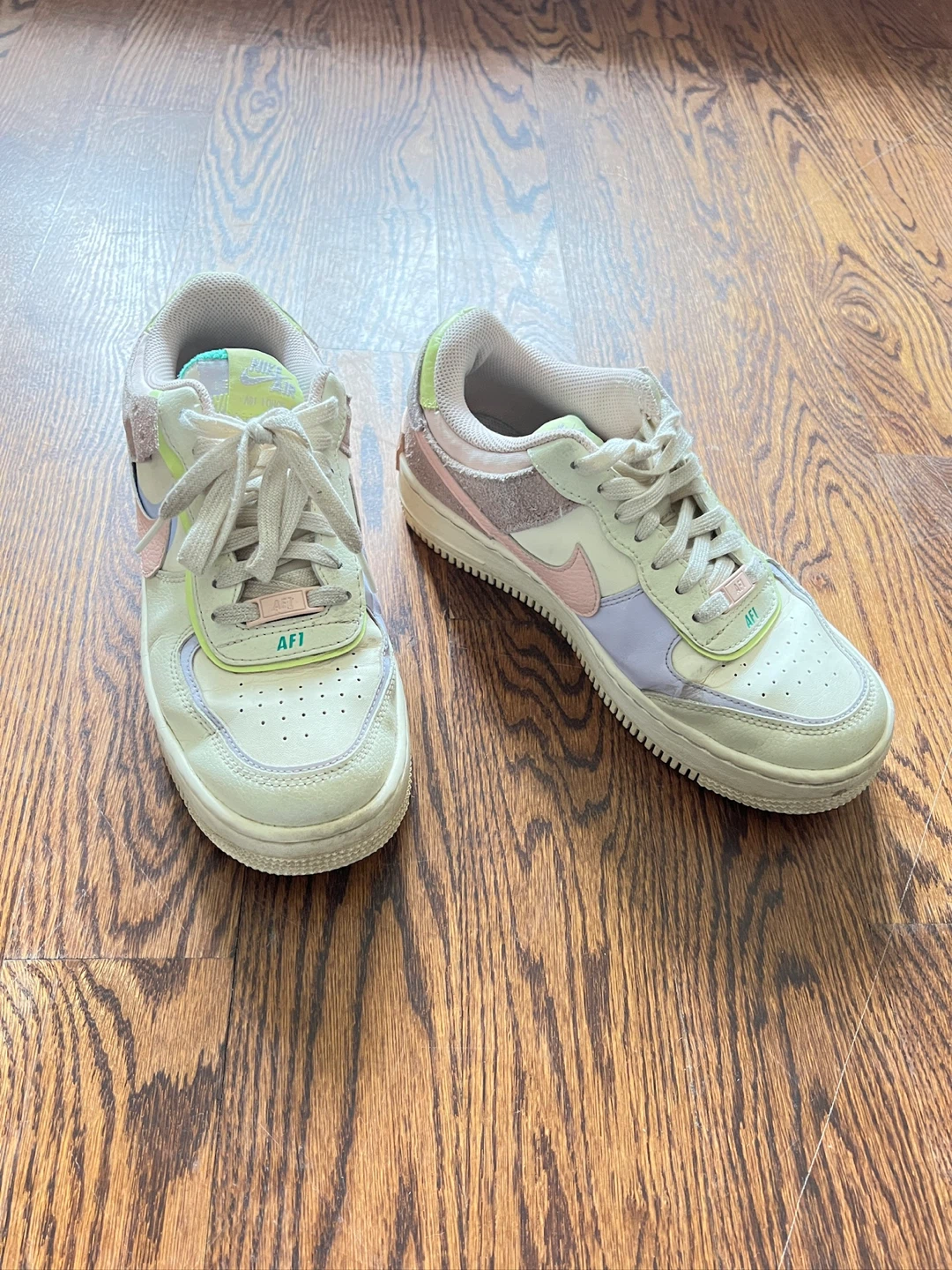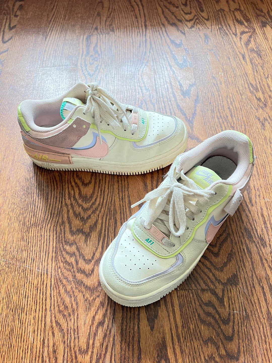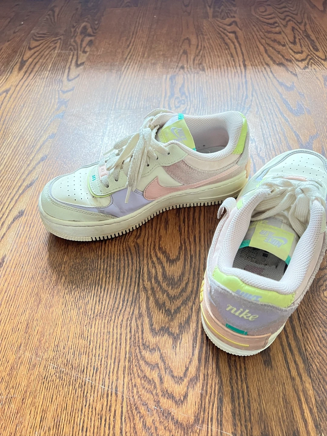 Selling a pair of Nike Air Force 1 Shadow sneakers in a lovely pastel colourway! They're in great condition and ready for a new owner. These shoes are super stylish and comfortable, perfect for everyday wear