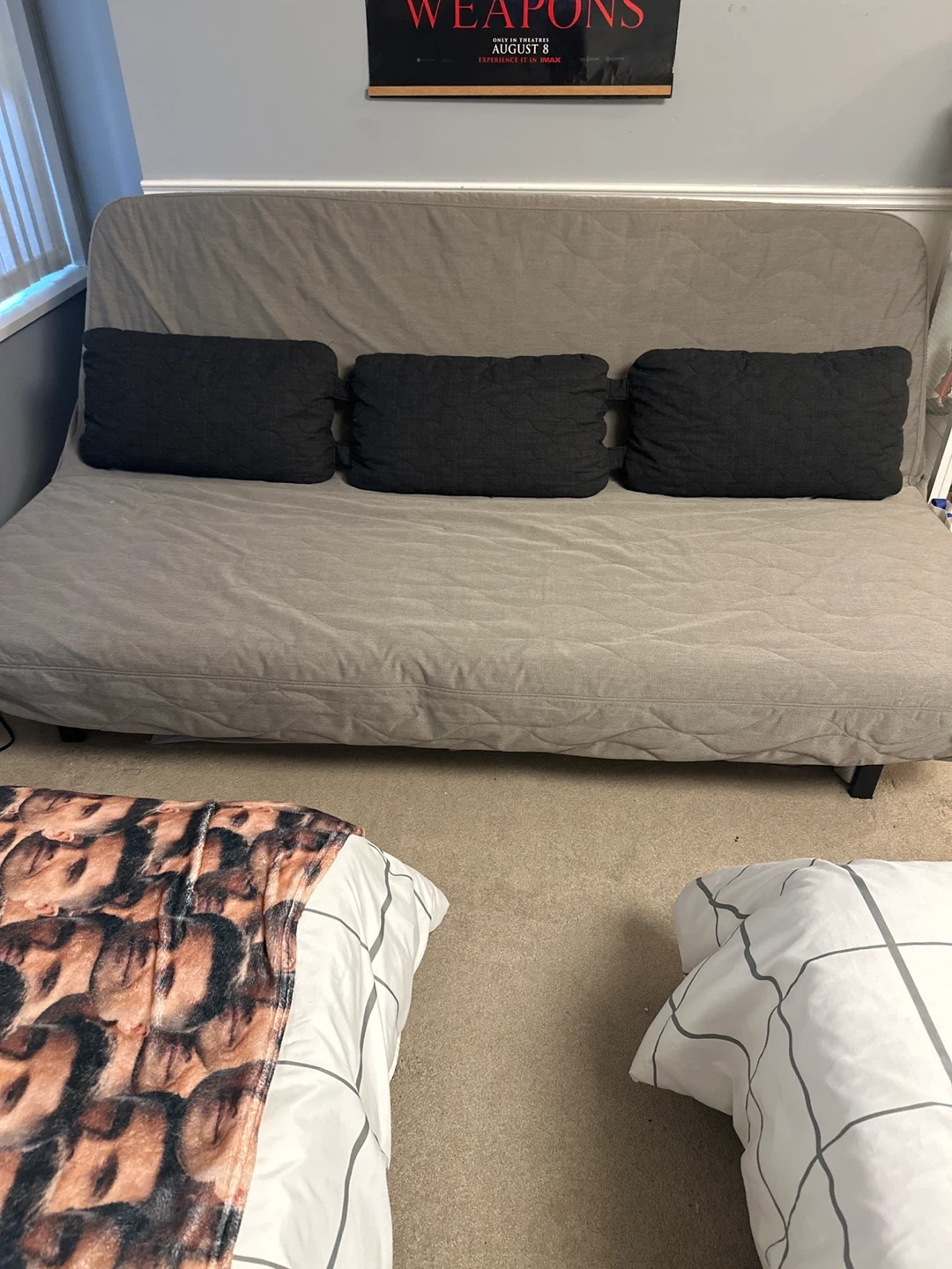 Buy & SellGrey Futon Sofa BedGrey Futon Sofa Bed$67Selling a comfy grey futon sofa bed. It's in great shape and ready for a new home! Perfect for a living room or guest roomWHERE TO MEET12 th StreetView MapSELLERverifiedMichelleBrow Of The Hill600 reviews0 chats·0 favorites·38 viewsSEND CHAT TO SELLERHi Michelle! I’m interested in your listing.Hi Michelle! I’m interested in your listing.Get the Karrot app to chatSign In to chat