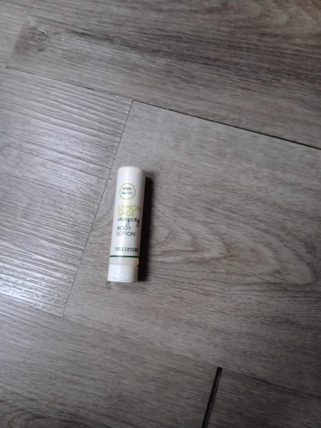 Here's a tube of Paul Mitchell Lemon Sage energizing body lotion. It's perfect for moisturizing and refreshing your skin with a lovely lemon and sage scent