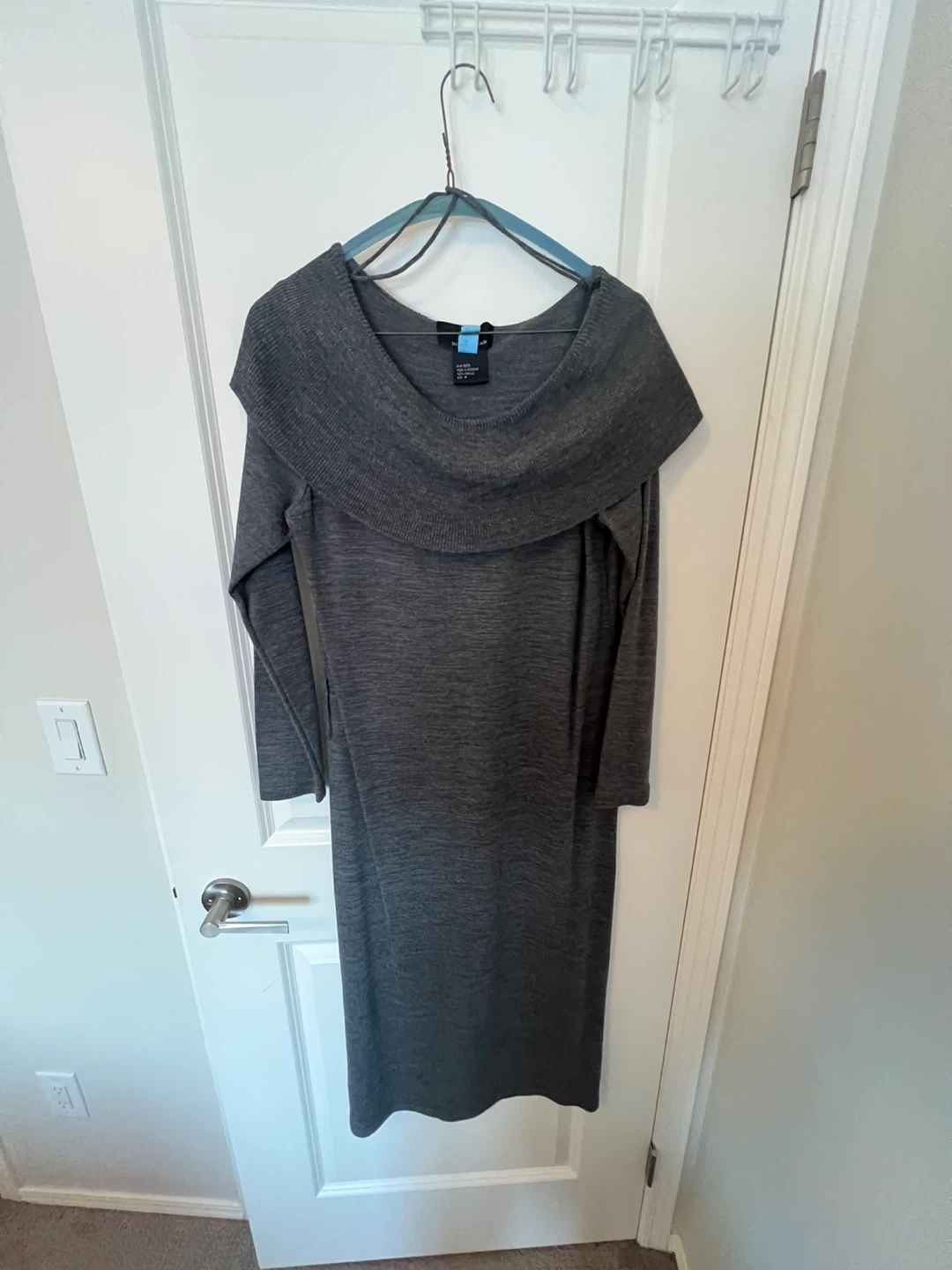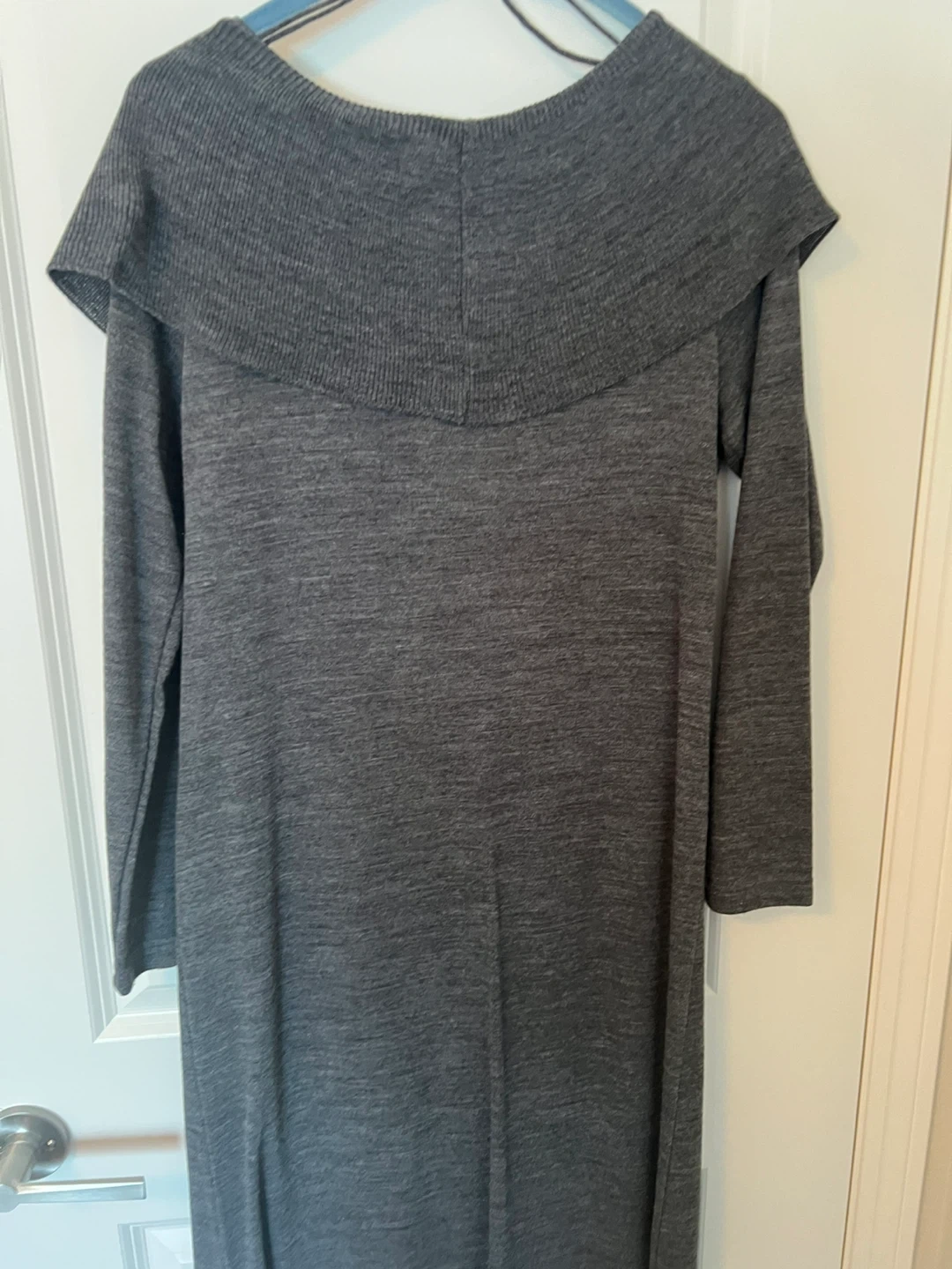 Selling a lovely dress in a stylish grey colour! It's made from comfortable wool and is a size M. Perfect for any occasion!