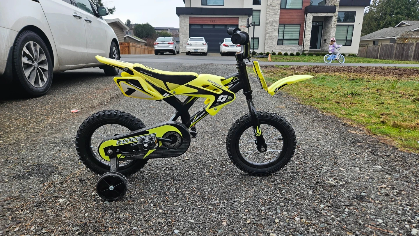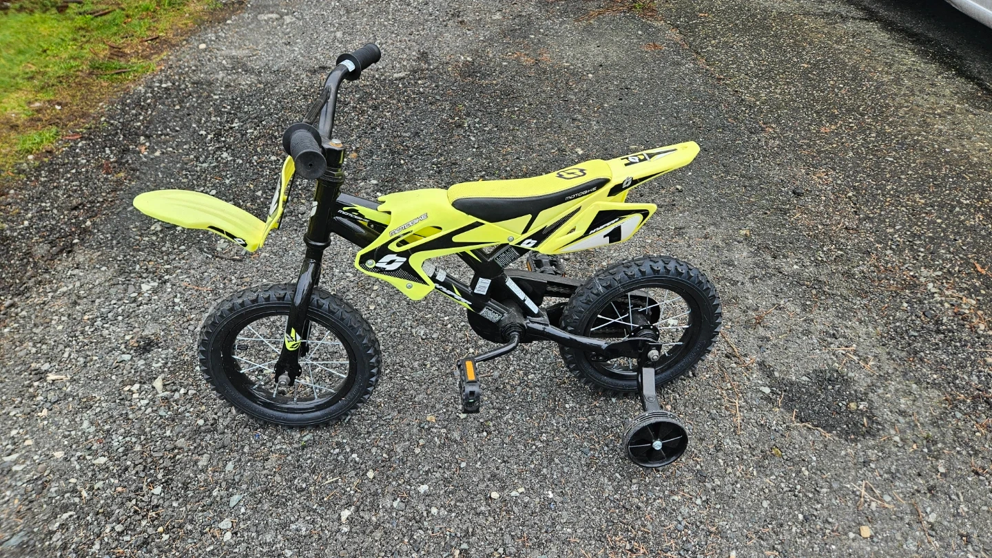 Hyper Motobike in a vibrant yellow colour! It's a 12-inch bike perfect for kids learning to ride. It is in immaculate condition, only rode a couple of times. $128.00 Brand New from Walmart. Asking $60 o.b.o