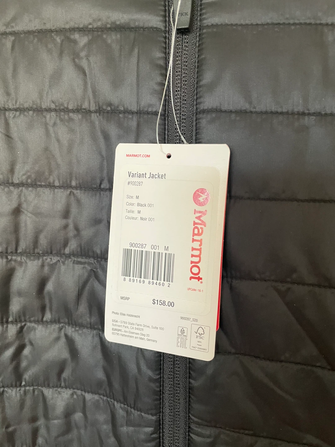 New! Marmot Black Jacket, Size M