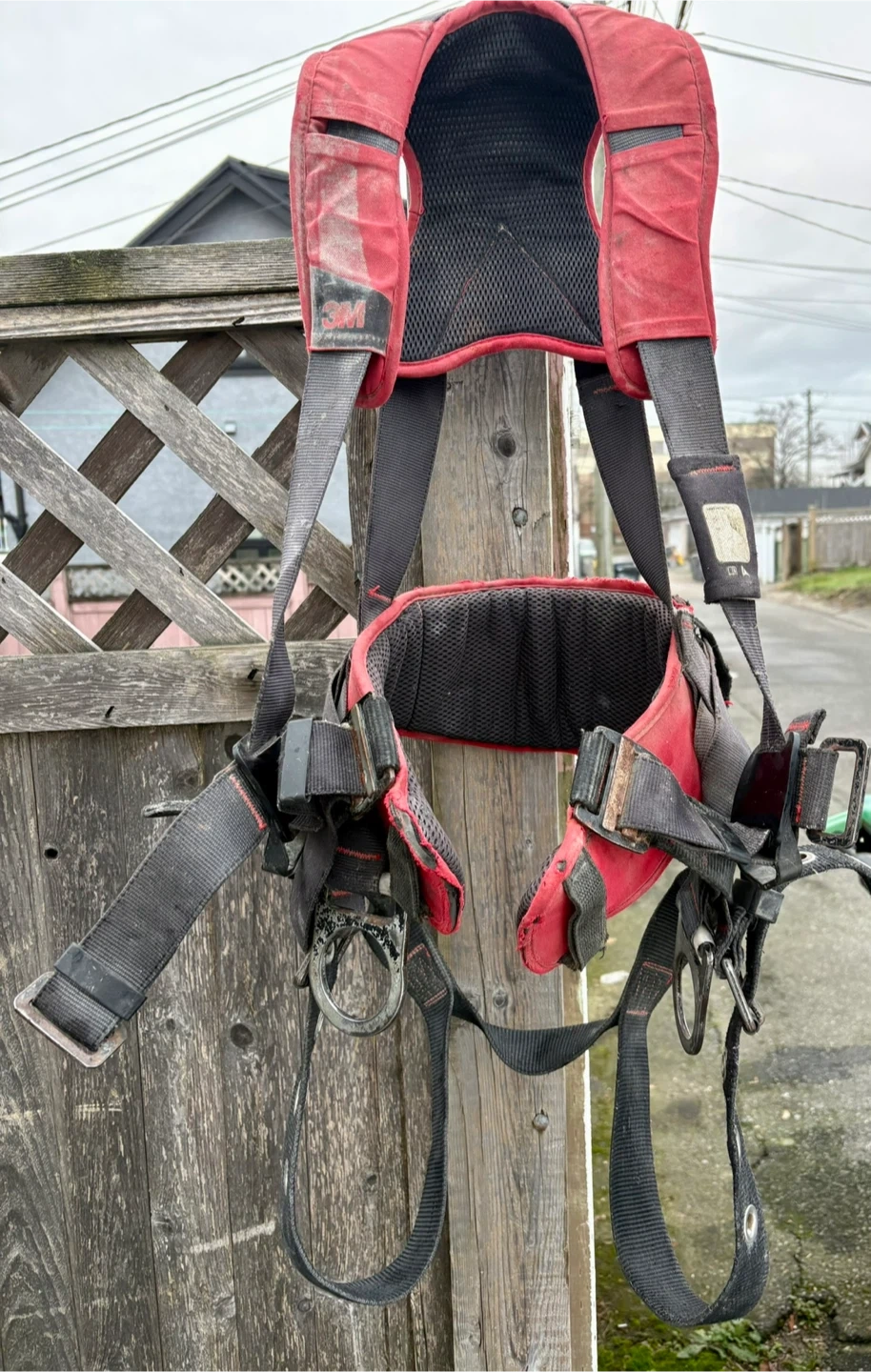 Selling a used 3M Protecta safety harness in red and black. It's in good condition and ready for use. Perfect for anyone needing a reliable safety harness for work or other activities! Unsure of size, looks like a large.