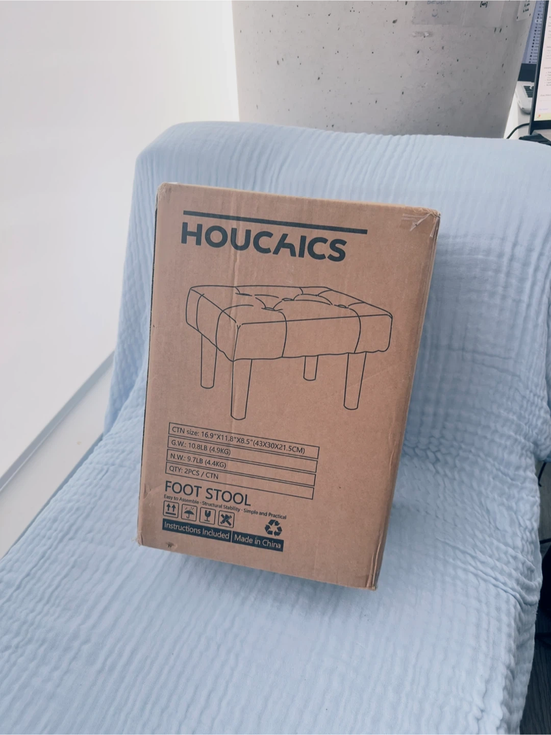HOUCHICS Small Footstool Ottoman - Grey