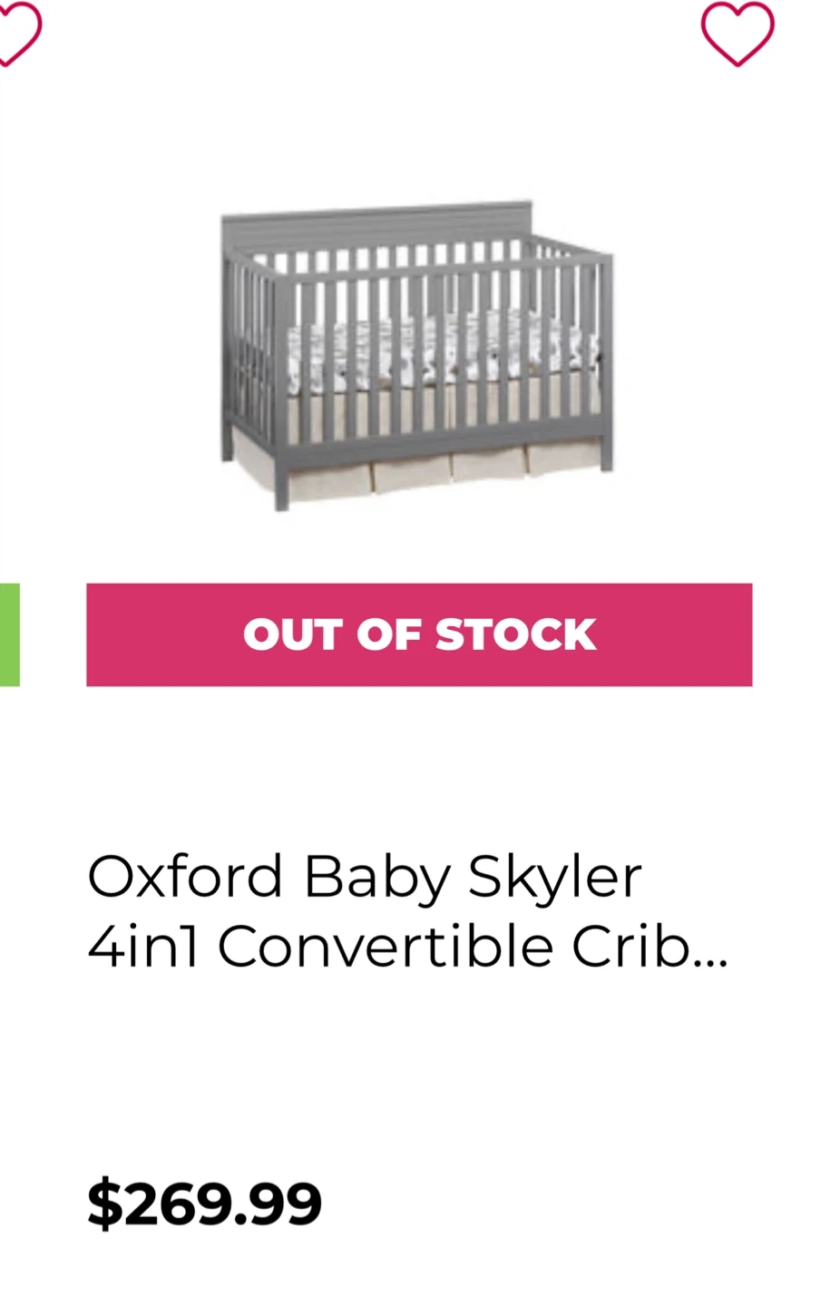 Selling an Oxford Baby Skyler 4-in-1 Convertible Crib. It's in great condition and ready for your little one! Originally bought for $269.99