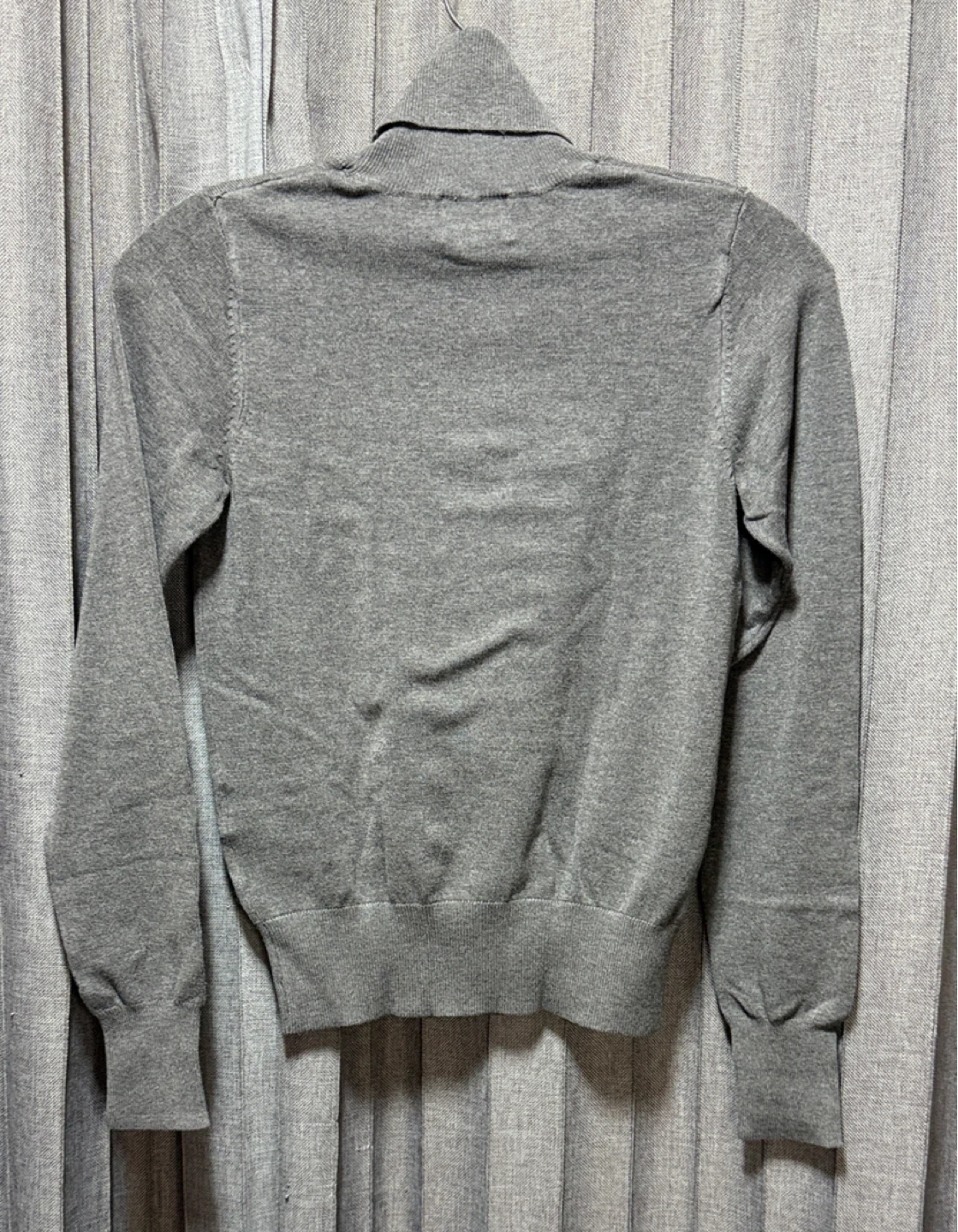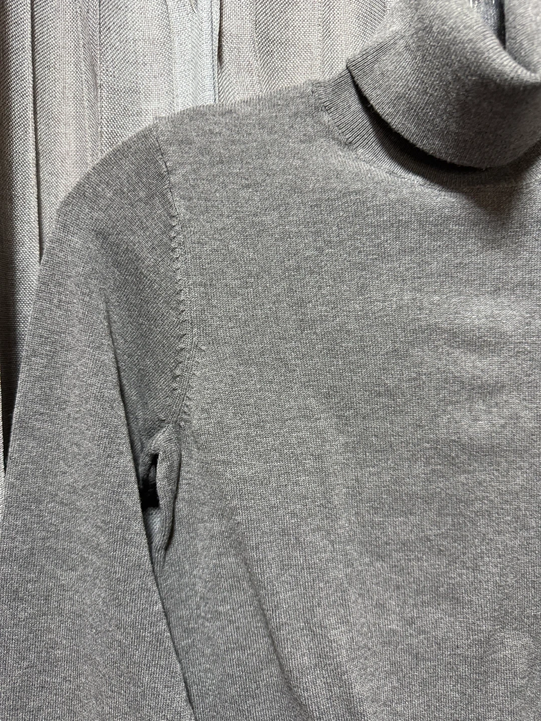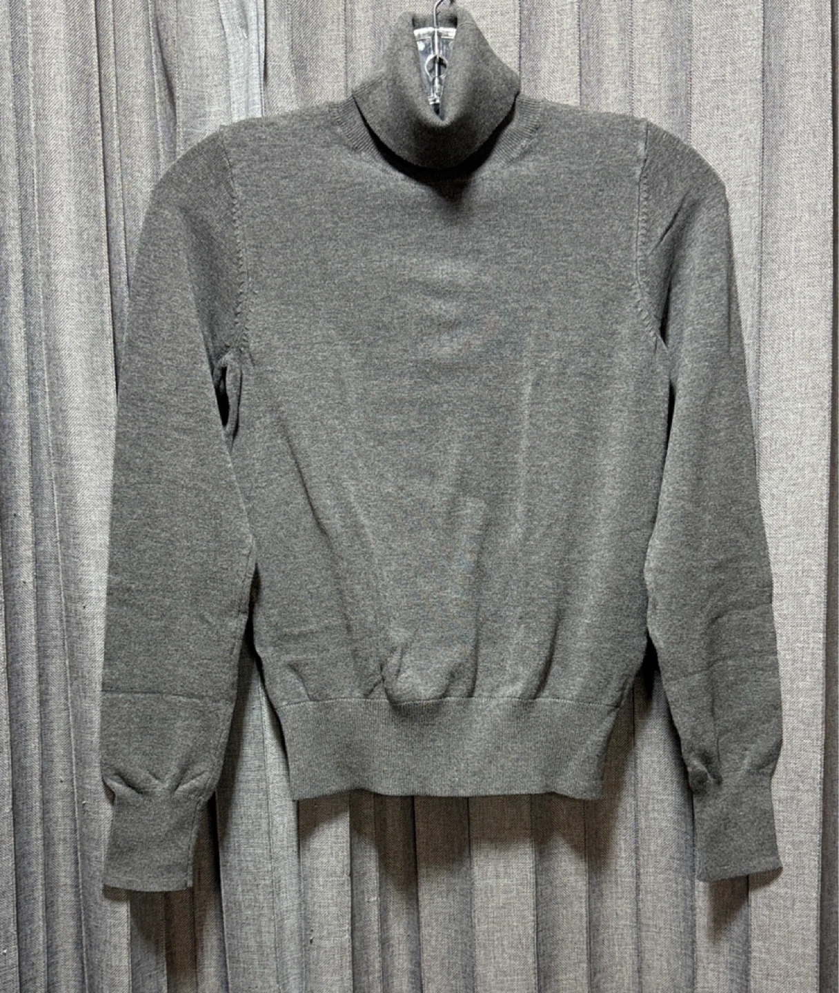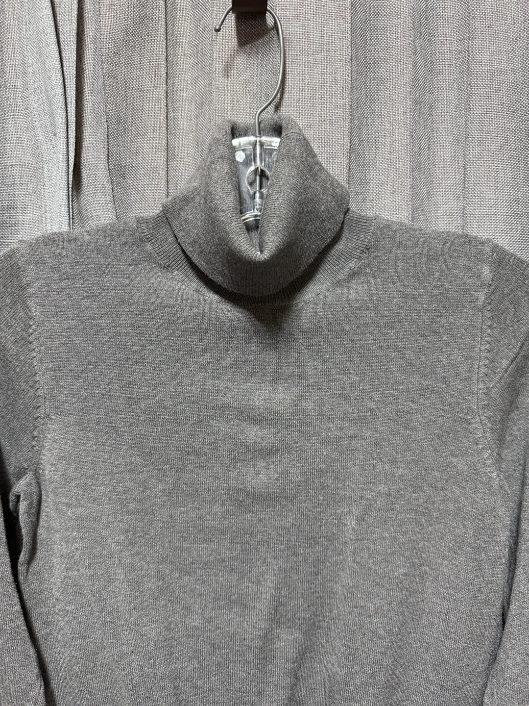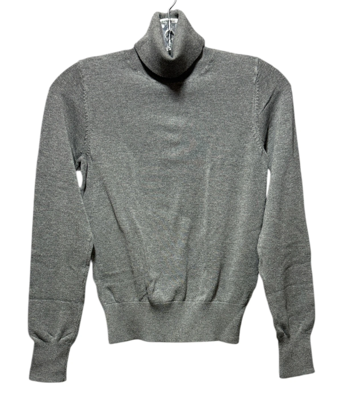 Here's a cozy grey turtleneck sweater! It's in great condition and perfect for layering during those chilly Canadian days. The material feels soft and comfortable, making it a great addition to your wardrobe. No pulls, no rips.