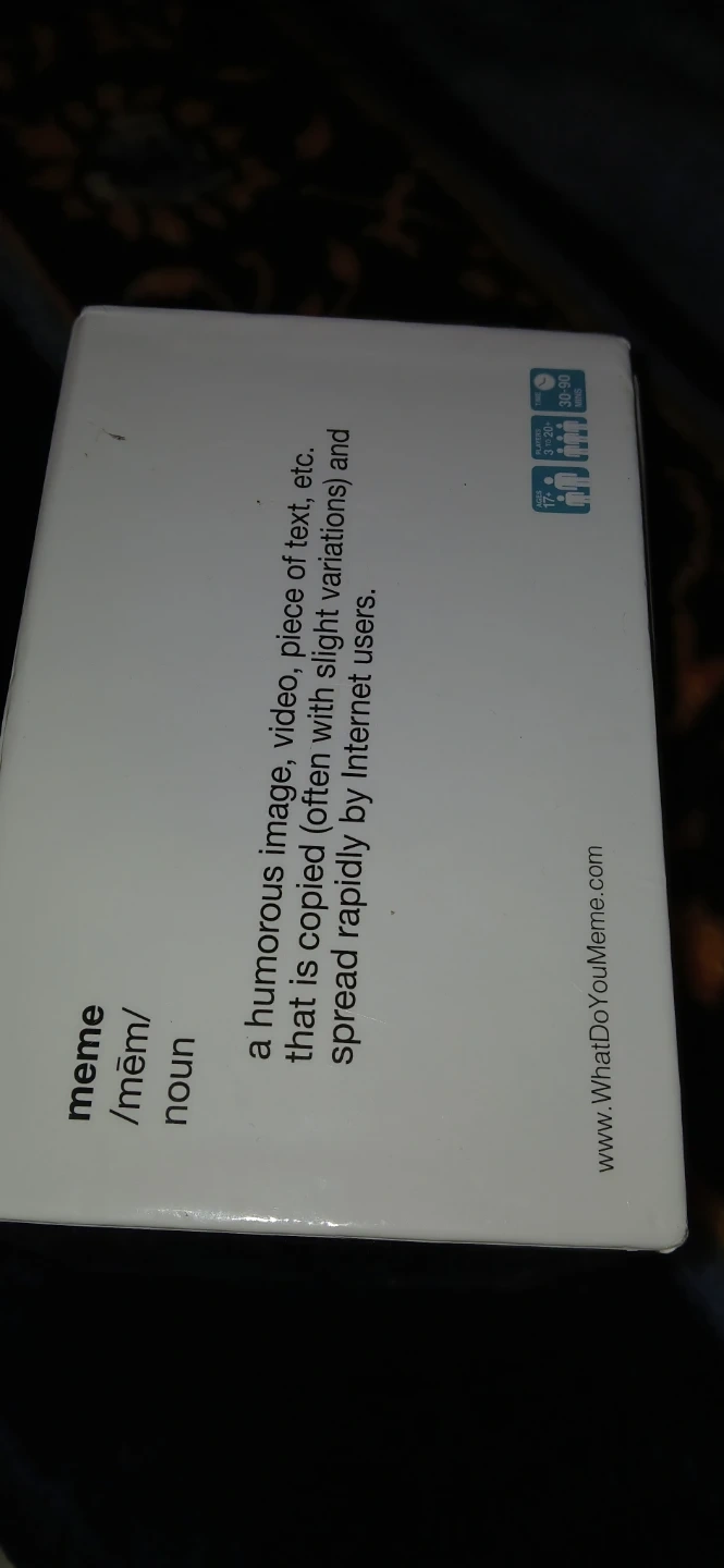 Buy & SellWhat Do You Meme? Adult Party GameWhat Do You Meme? Adult Party GameFreeSelling a What Do You Meme? adult party game. It's a fun game for meme-lovers! Comes with an easel inside the boxConditionLike newWHERE TO MEETCheck LocationView MapSELLERverifiedIfyDowntown41830 reviews0 chats·0 favorites·9 viewsSEND CHAT TO SELLERHi Ify! I’m interested in your listing.Hi Ify! I’m interested in your listing.Get the Karrot app to chatSign In to chat