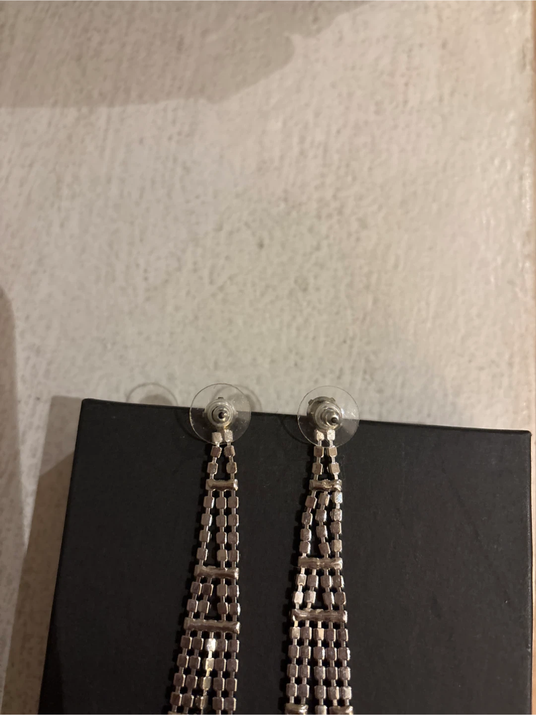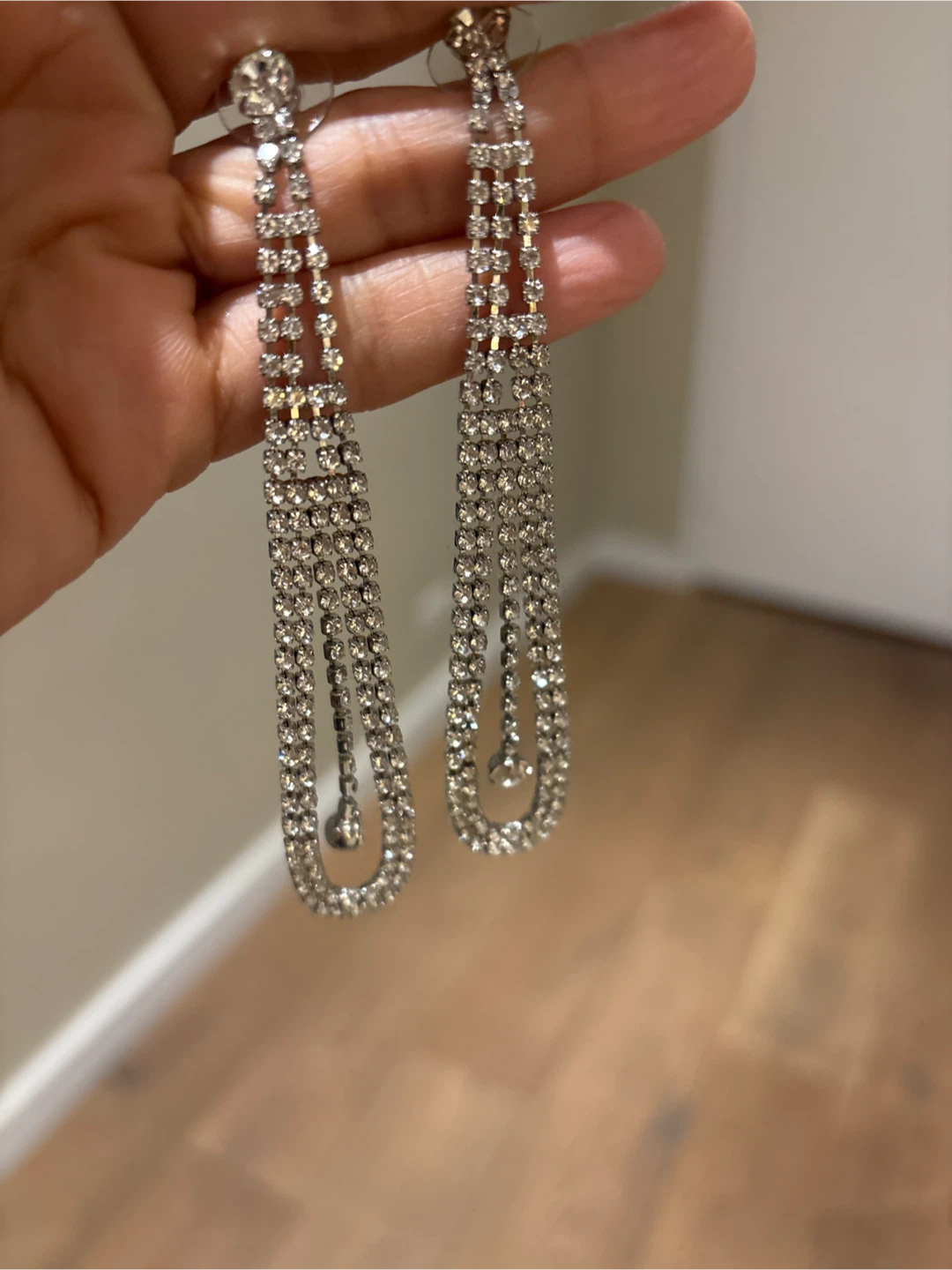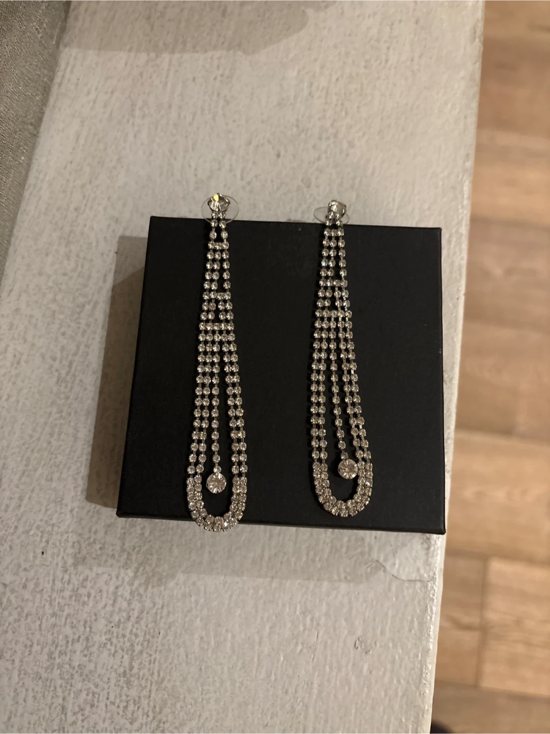 These are a pair of rhinestone dangle earrings. They come in a box and are in great condition!