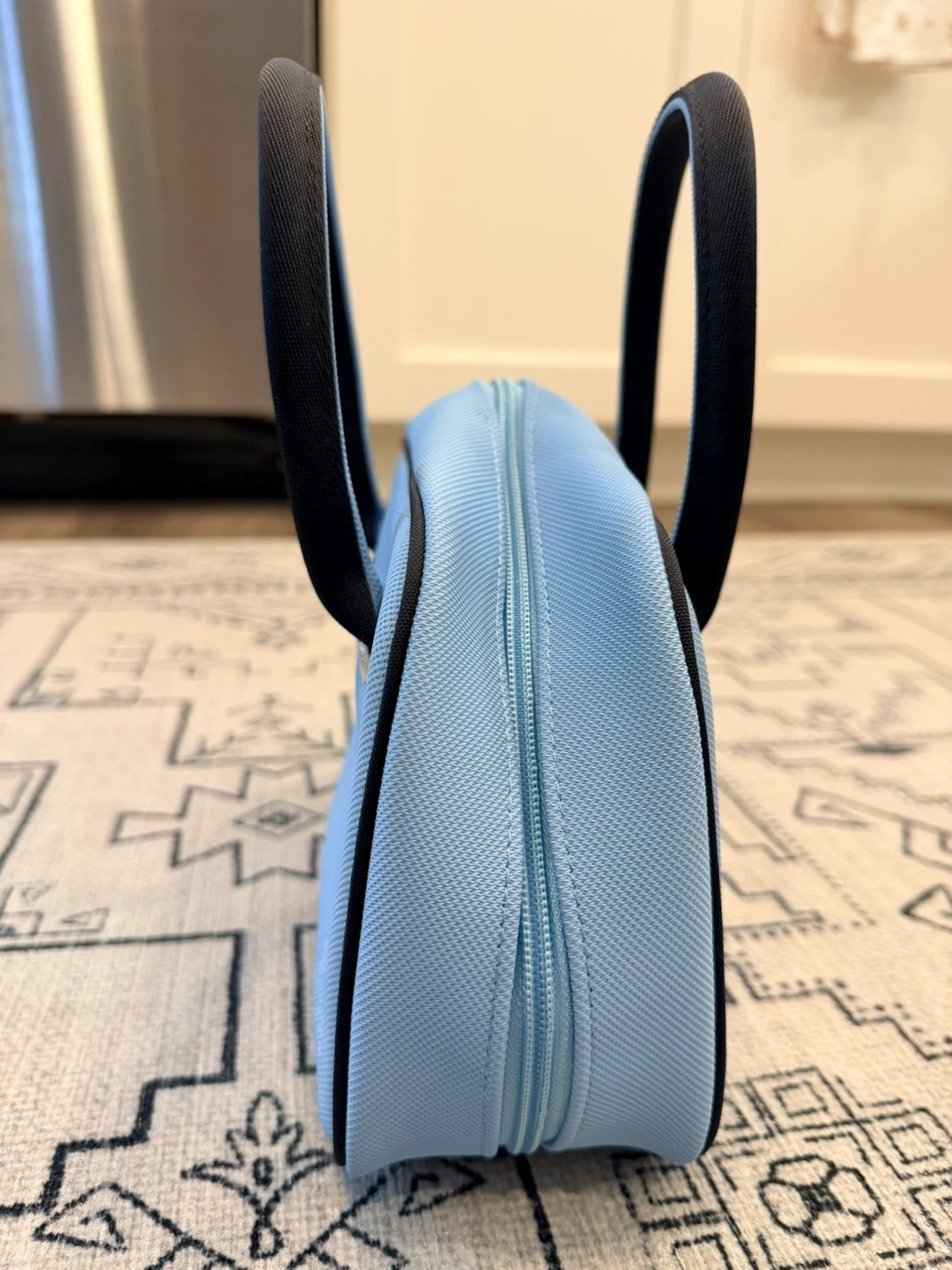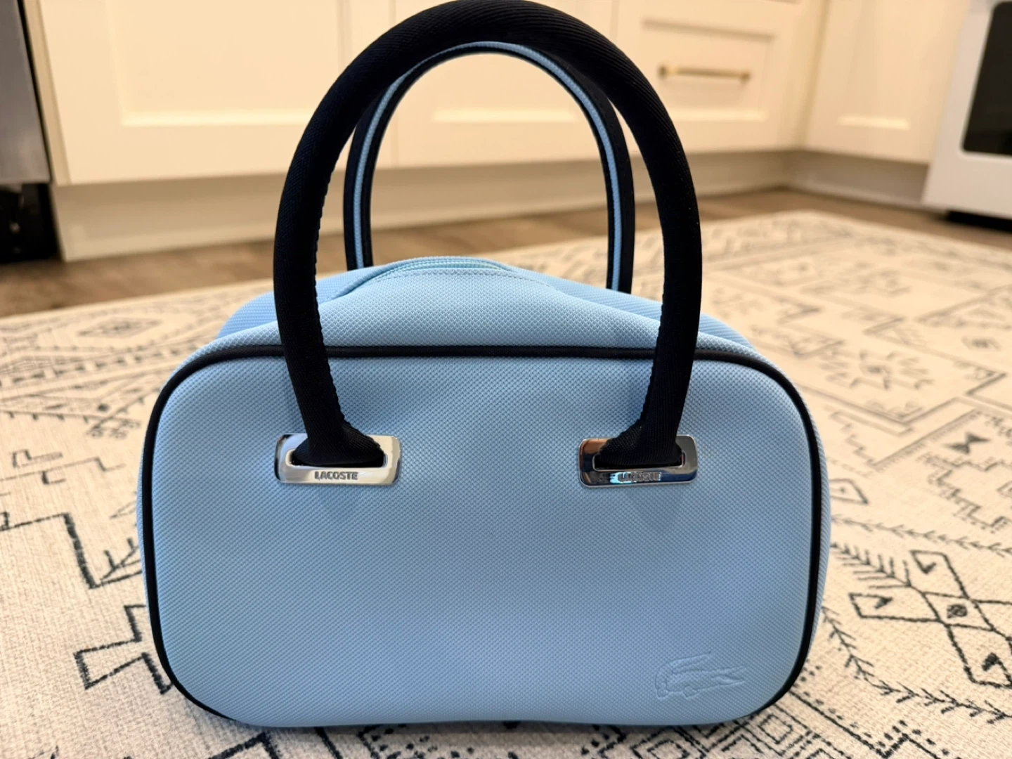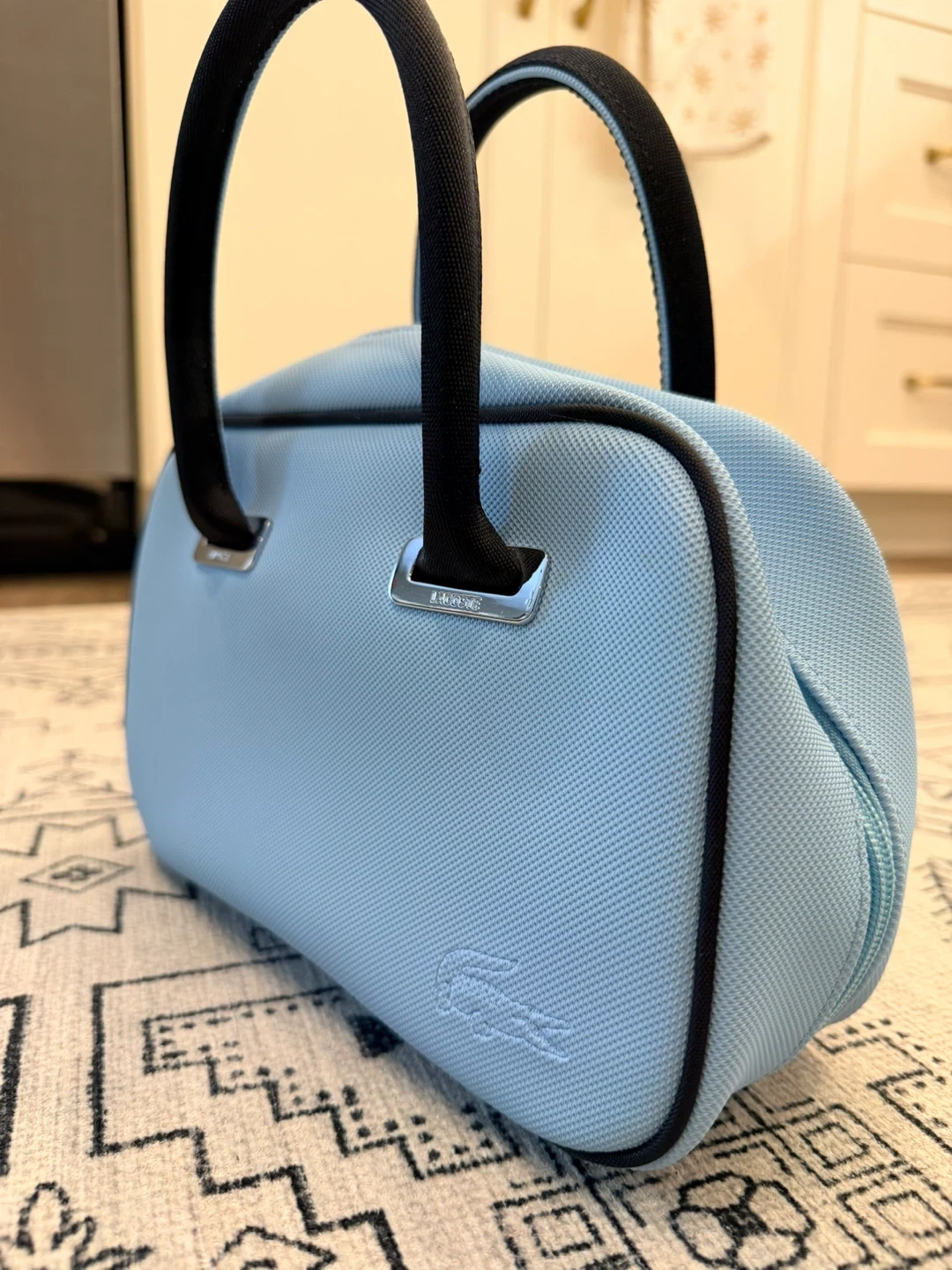 Selling a Lacoste Women's Neocroc Small Bowling Bag in a lovely light blue colour. It's in great condition and ready for a new owner! The bag features black handles and the iconic Lacoste crocodile logo.