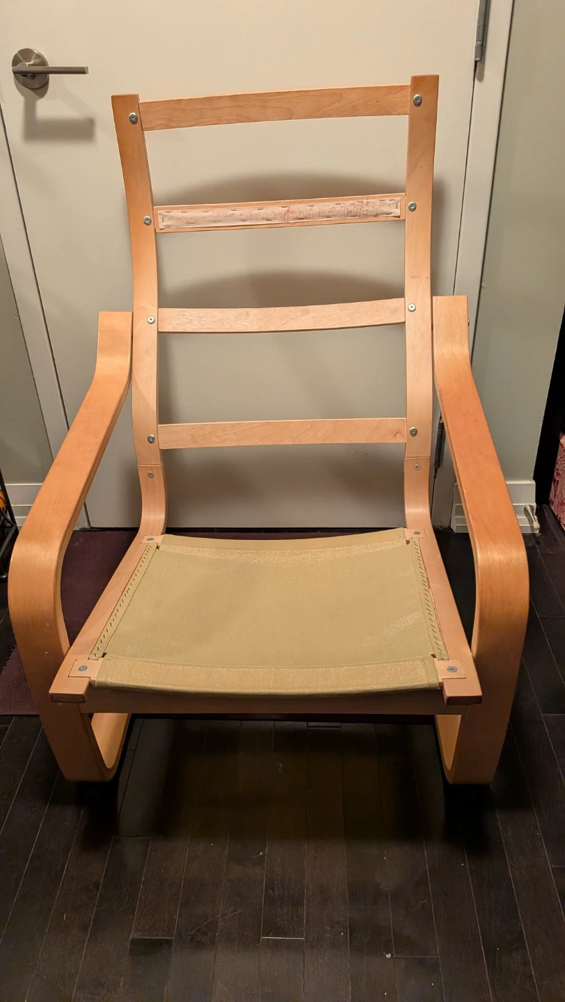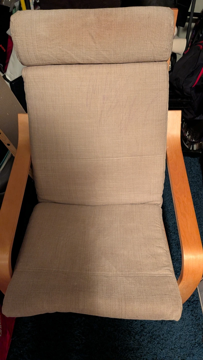 Choose your own cushion colour at IKEA to go with this IKEA Poang chair with a birch veneer frame and a comfortable seat or use current cushion. It's been hand washed but well loved.