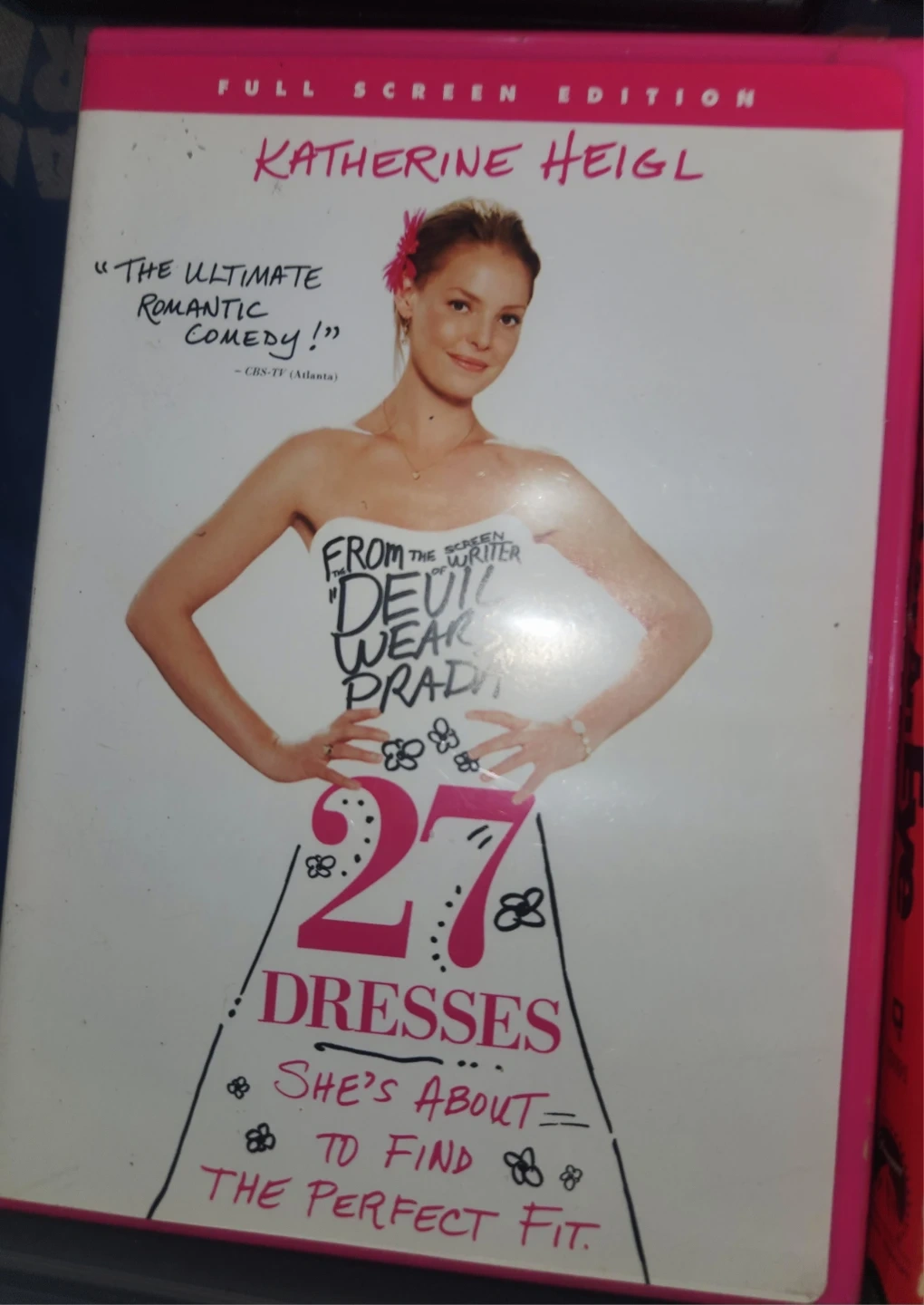 Selling the DVD "27 Dresses" Full Screen Edition, starring Katherine Heigl! It's a romantic comedy about finding the perfect fit. Pick up only unless near intersection of Oxford and Gammage Street.