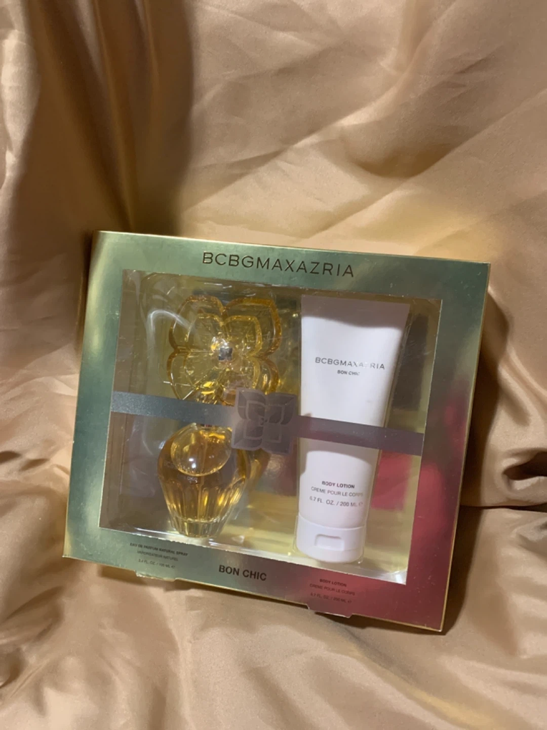 Selling a BCBGMAXAZRIA Bon Chic gift set! It includes eau de parfum natural spray and body lotion crème pour le corps. The body lotion is 6.7 fl oz / 200 ml. Perfect as a gift or for yourself