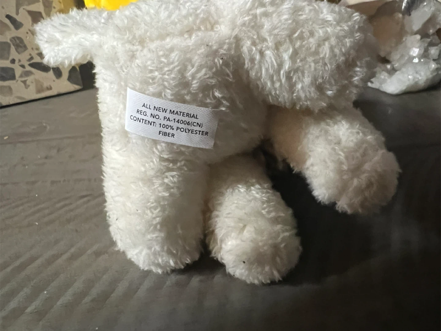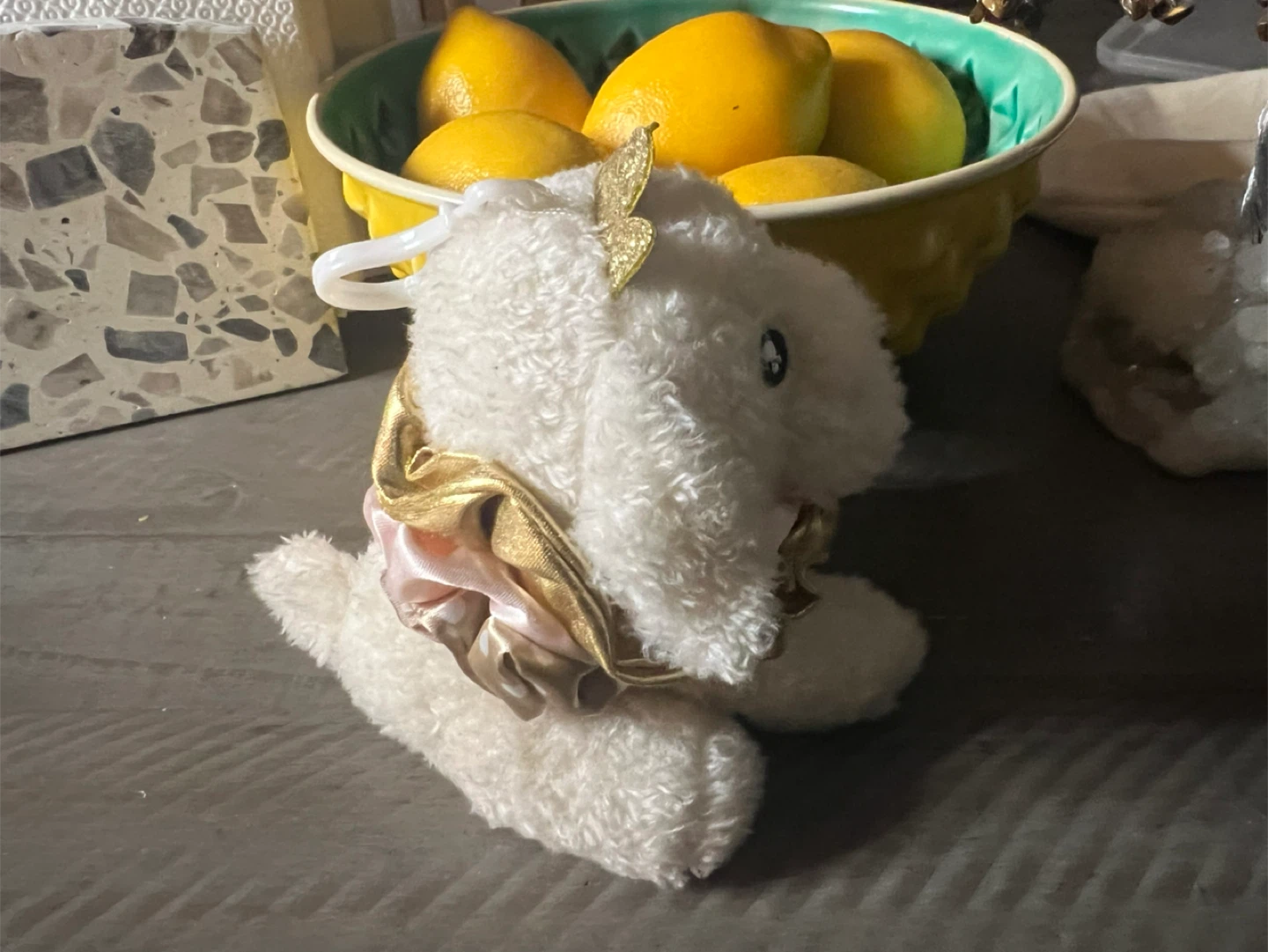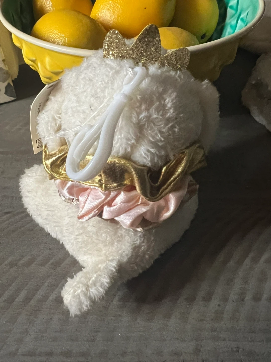 This is a cute white plush dog from L U girlz! It has a gold ribbon around its neck and a gold crown on its head. It's in great condition!