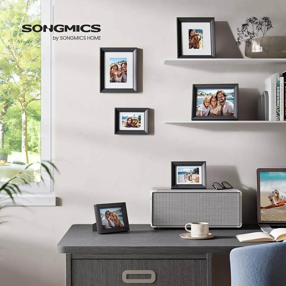 Brand new SONGMICS collage photo frames, still sealed in the original box. Modern ash black finish with real glass fronts — perfect for showcasing family photos, prints, or artwork.