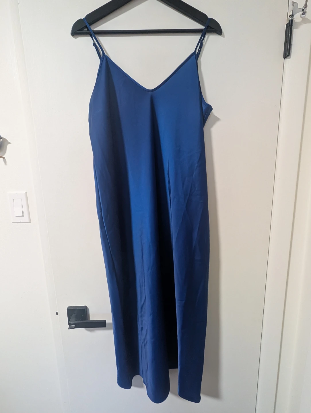 Selling a lovely blue spaghetti strap dress! It's in great condition and ready for a new owner. This dress is perfect for a casual day out or dressing up for a special occasion. It's a beautiful colour and a comfortable fit!