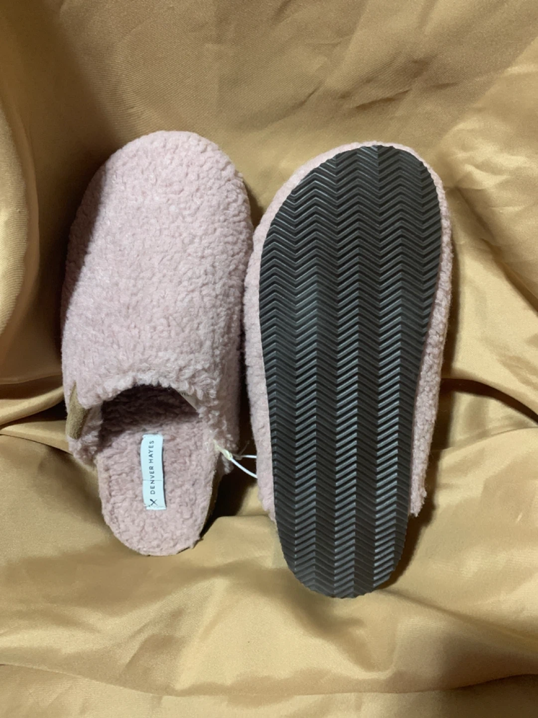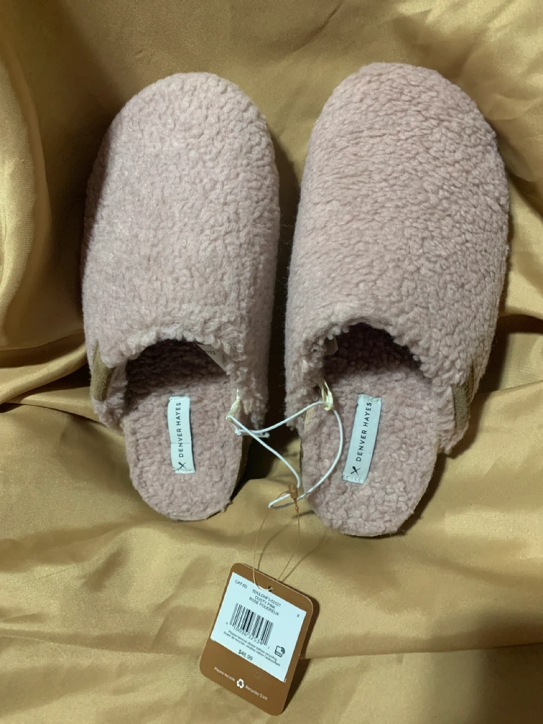 Cozy up with these brand new Denver Hayes slippers! They're a lovely dusty pink colour and a women's size 8. The tag is still attached and shows they were originally $46.99