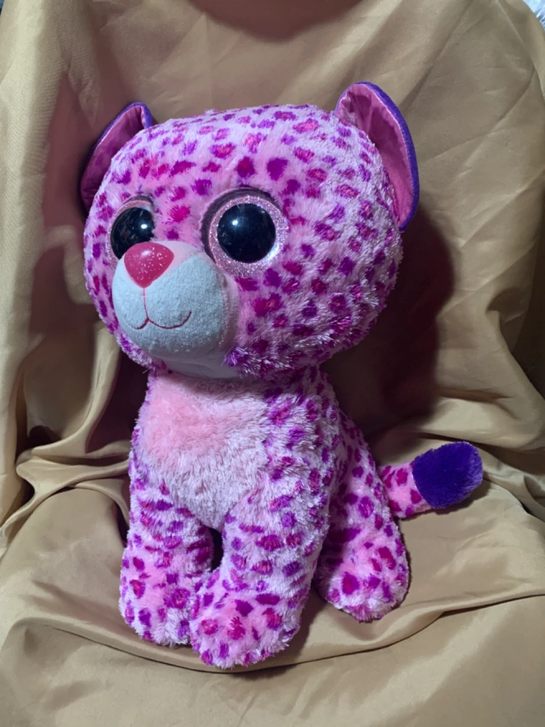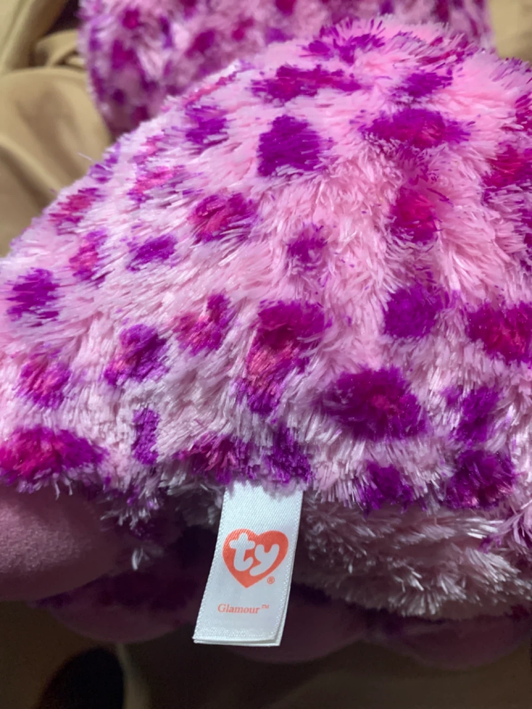 Selling a Ty Beanie Boo named Glamour! It's a super cute leopard plush with pink and purple spots and big, sparkly eyes. Perfect for any Beanie Boo collector or anyone who loves cuddly toys