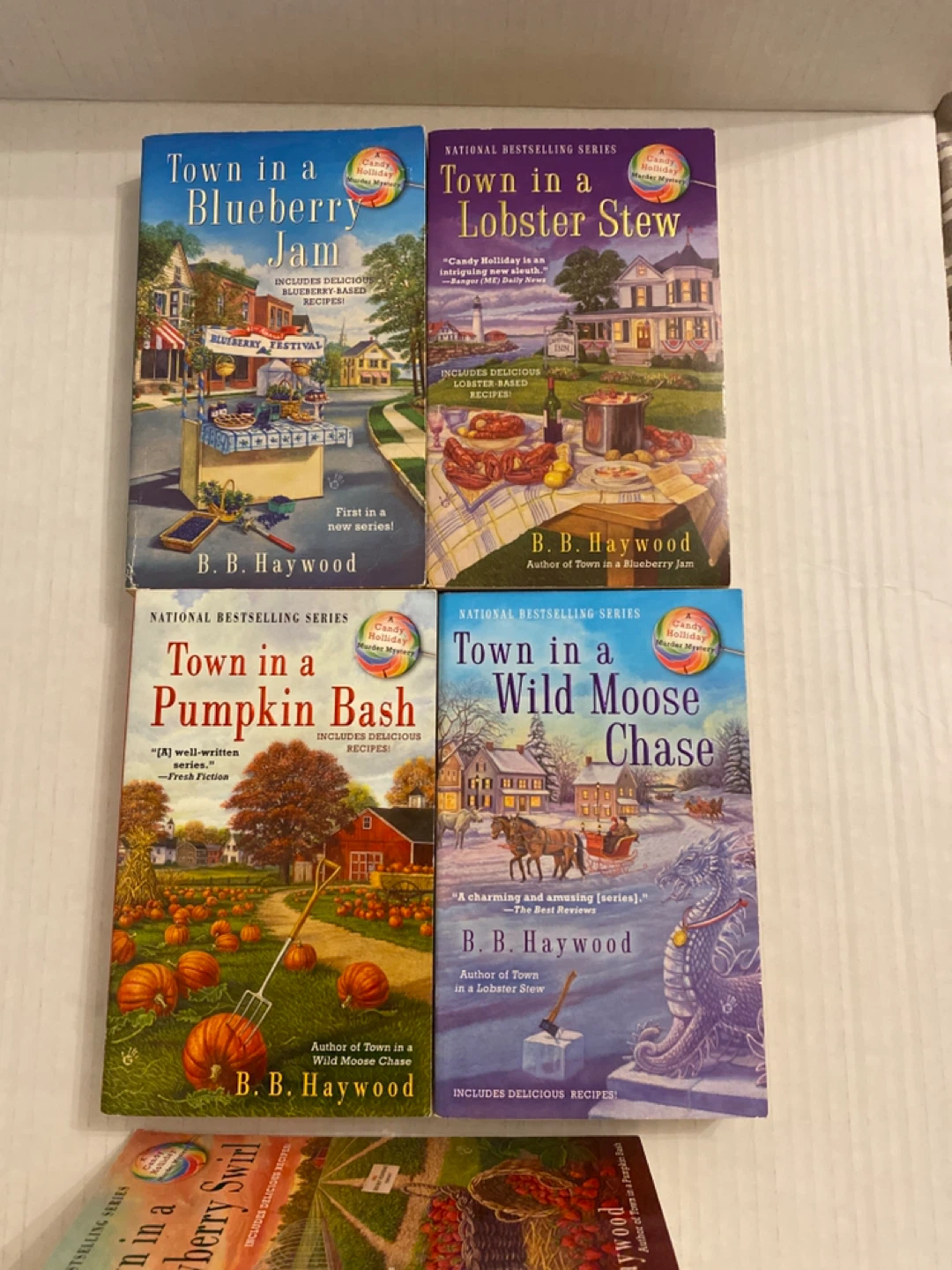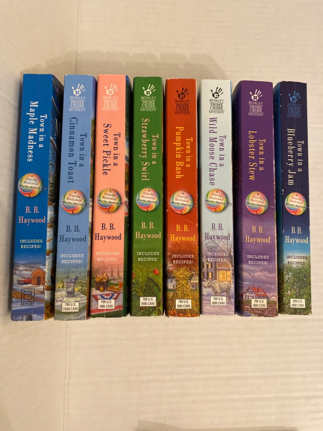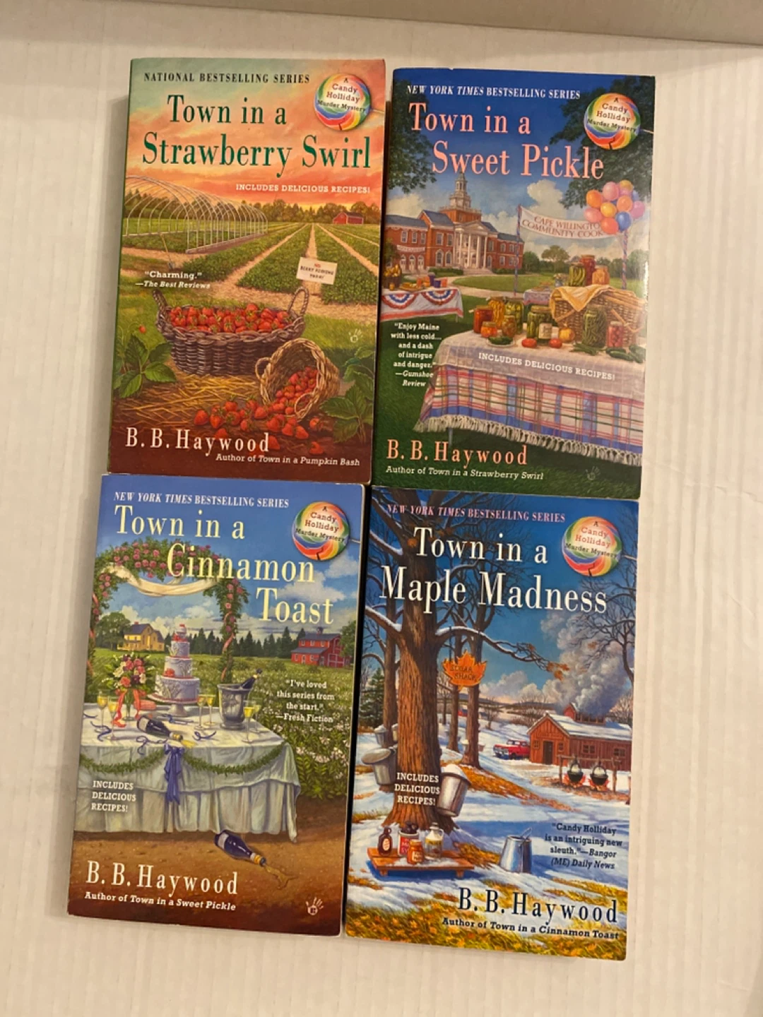 Selling the "Town In A..." series by B.B. Haywood! These are Candy Holiday Mystery books that also include delicious recipes! Titles include Strawberry Swirl, Sweet Pickle, Cinnamon Toast, Maple Madness, Blueberry Jam, Lobster Stew, Pumpkin Bash, and Wild Moose Chase