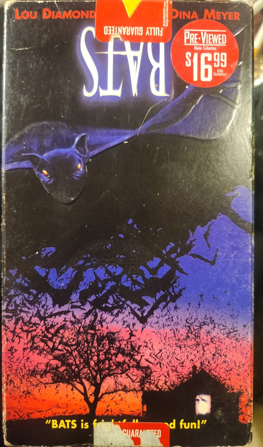 Selling a VHS copy of the movie Bats, starring Lou Diamond Phillips and Dina Meyer! It was originally bought for $16.99..