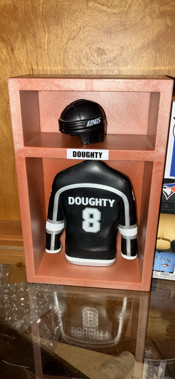 Selling a Drew Doughty Los Angeles Kings jersey display case. It includes a miniature Kings helmet and a Doughty jersey. Great for any hockey fan!