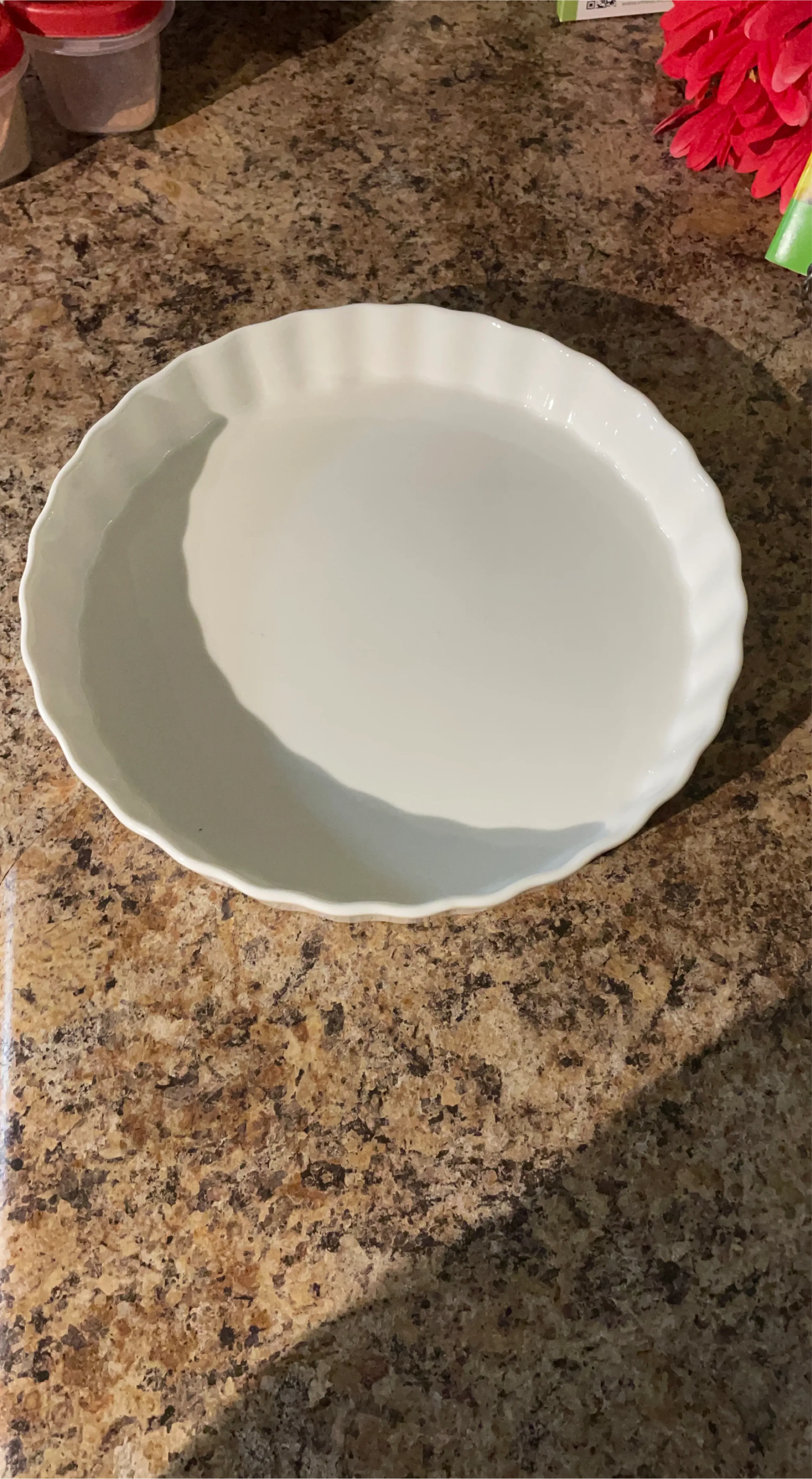 Selling a white pie dish, perfect for baking your favourite pies! It is in great condition and ready for a new home. Also, great for making quiche in the oven.