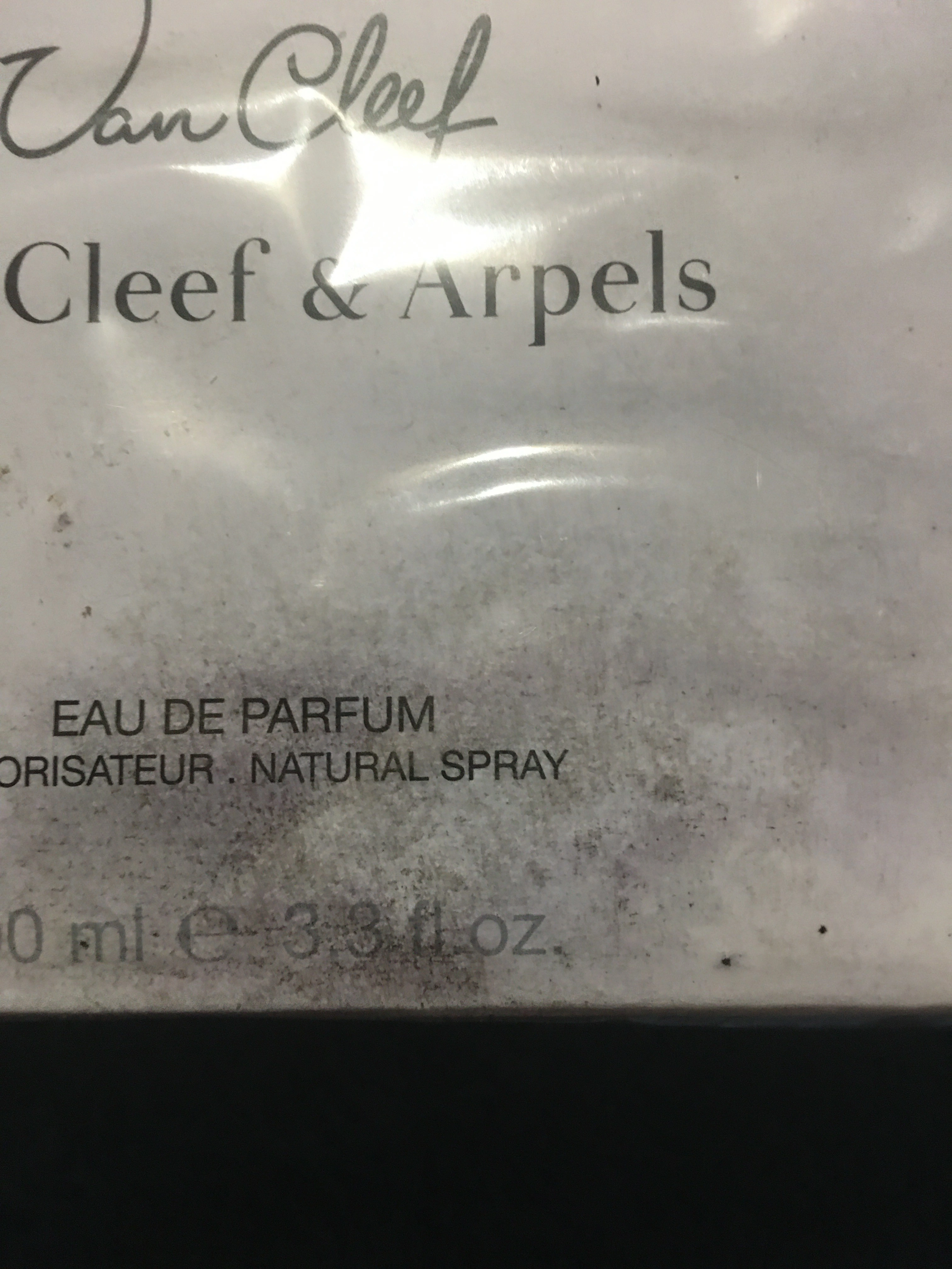Selling a Van Cleef & Arpels Eau de Parfum. It's a 100ml vaporisateur natural spray. The box is included! I'm not sure what happened to this but please look at the photos as it did get what looks like mold damage but it still is brand new never opened Only the box is damaged as something leaked onto it