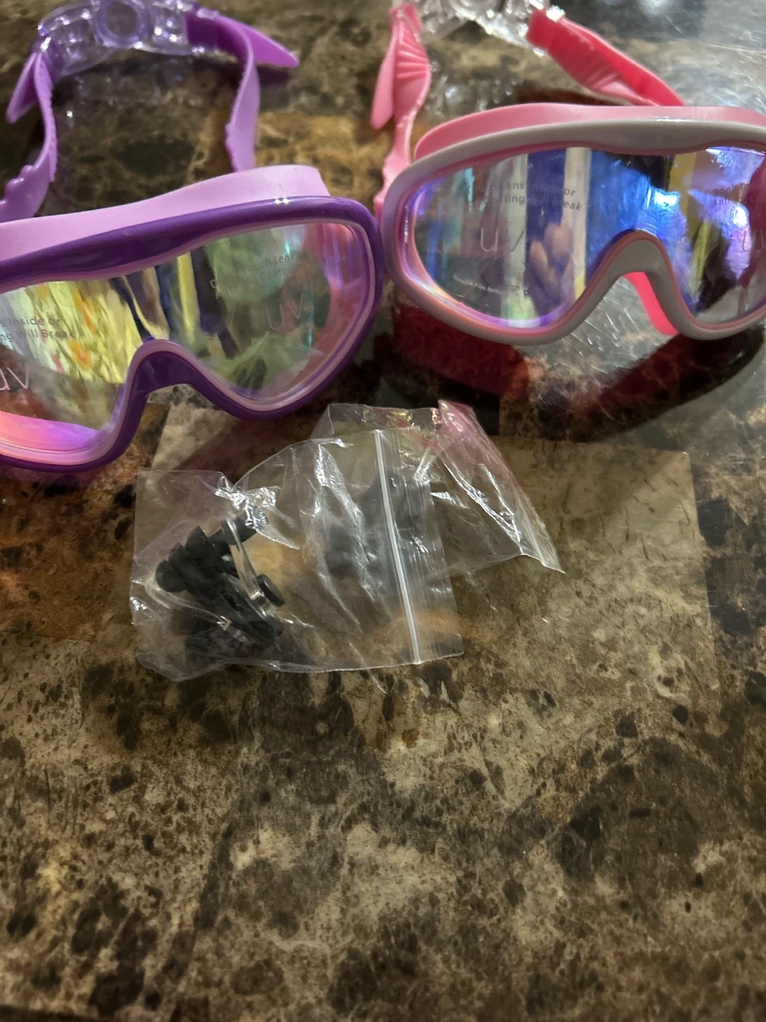 Selling two new pairs of VU swim goggles! One pair is pink and the other is purple. They also come with extra nose pieces. Pick up at Islington /401 / bergamot avenue Etobicoke.