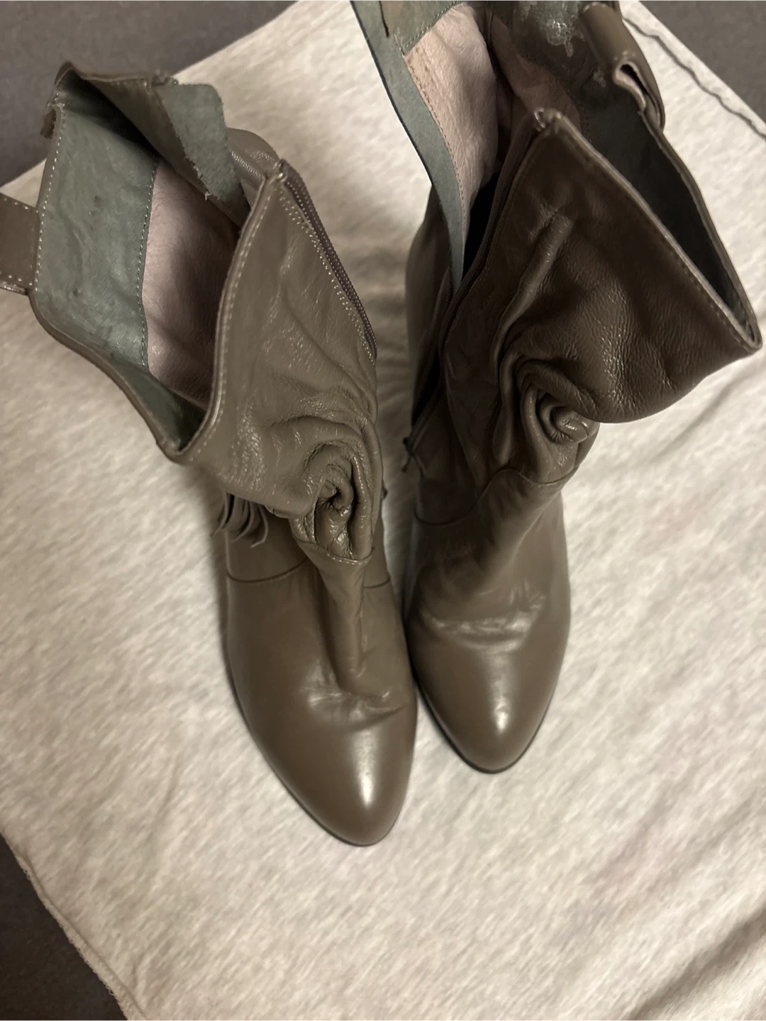 Worn and had few accidents on heels as shown. Otherwise very good leather.