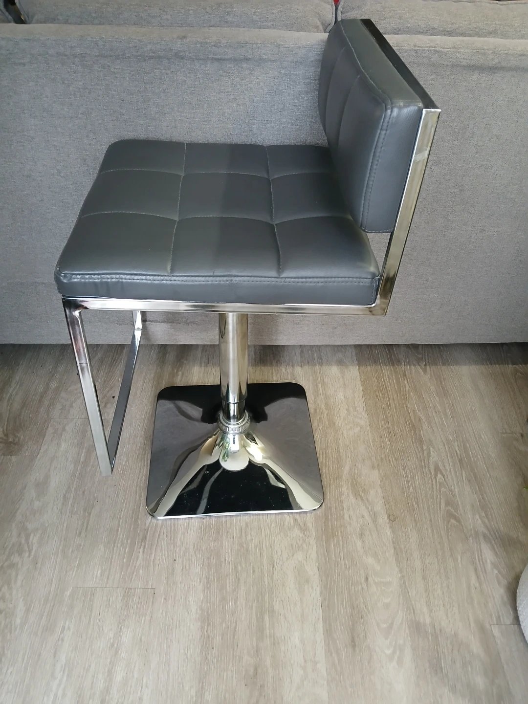 Sold 2, 1 left - Grey swivel bar stool with a chrome base. It's in great condition and would look great in any kitchen or bar area! The seat is padded for