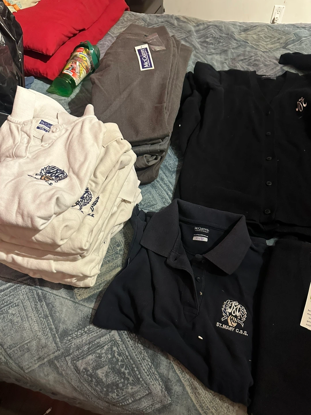 Selling a bundle of McCarthy school uniforms. St mary high school uniforms Includes various pieces such as polos, sweaters, and vests. Sizes range from small to medium. All in good condition and ready for a new school year$350 or best offer . Also willing to trade for an acoustic guitar