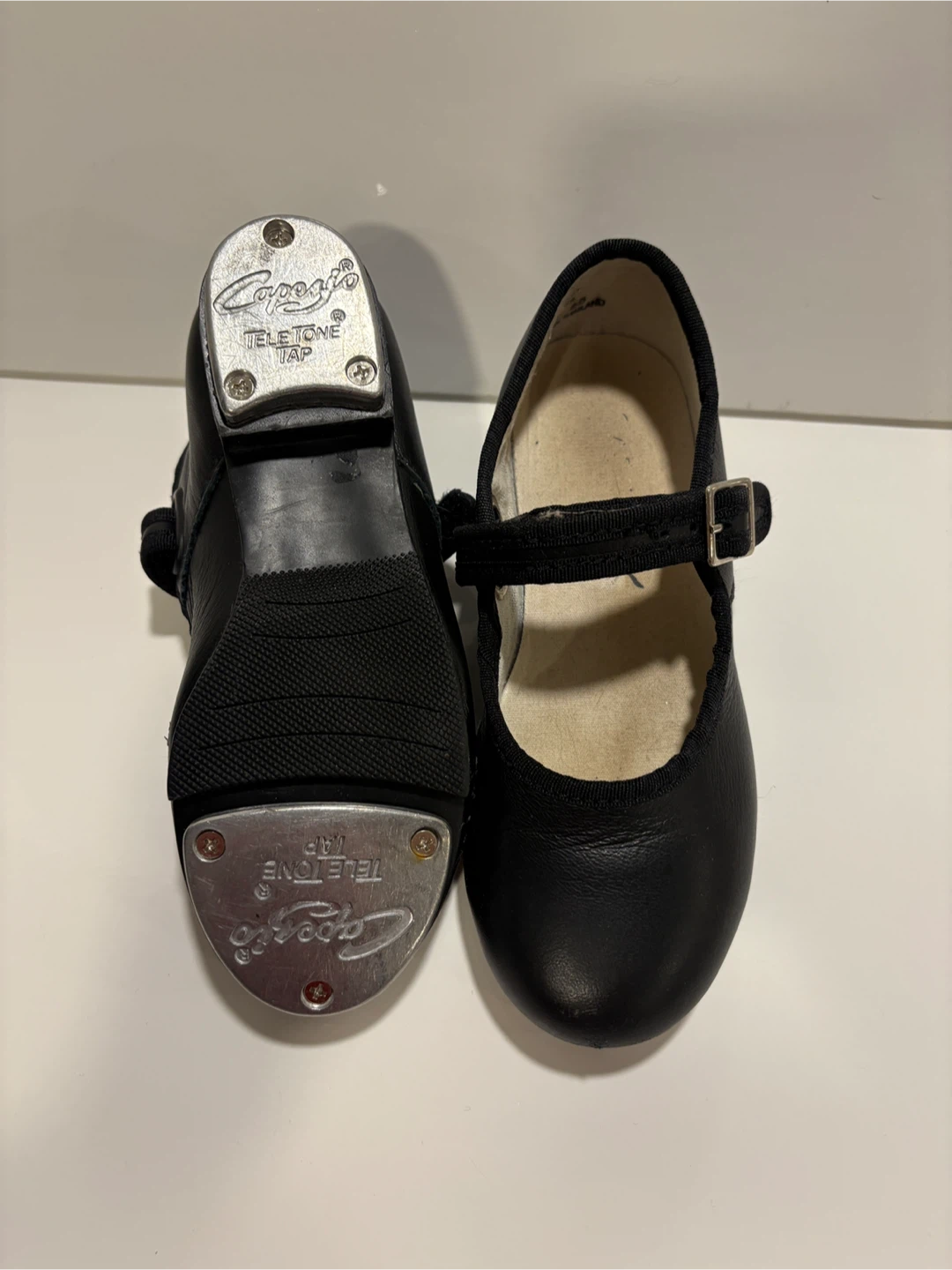 Selling a pair of Capezio black leather tap shoes. They are in good condition and ready for their next dance performance! Size 10.5