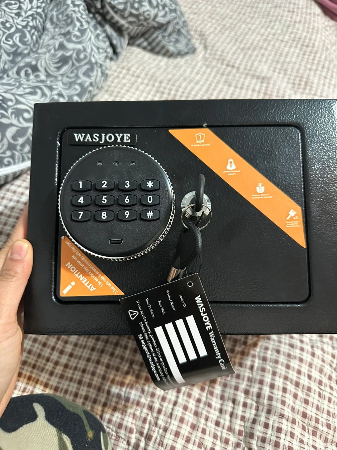 Selling a WASJOYE cabinet safe box brand new! It comes with the user manual, warranty card, USB cable, and a bag of screws and wall anchors. Perfect for keeping your valuables secure!