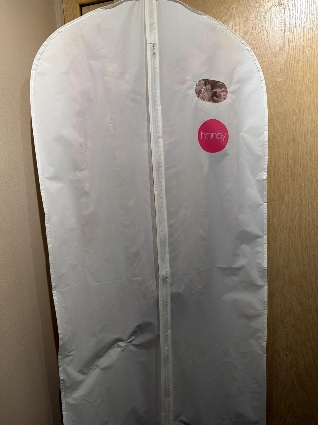 Selling a Honey brand mini dress with a floral pattern. It features a ruched design and comes in a light pink colour. The dress is in great condition and comes with a garment bag for protection