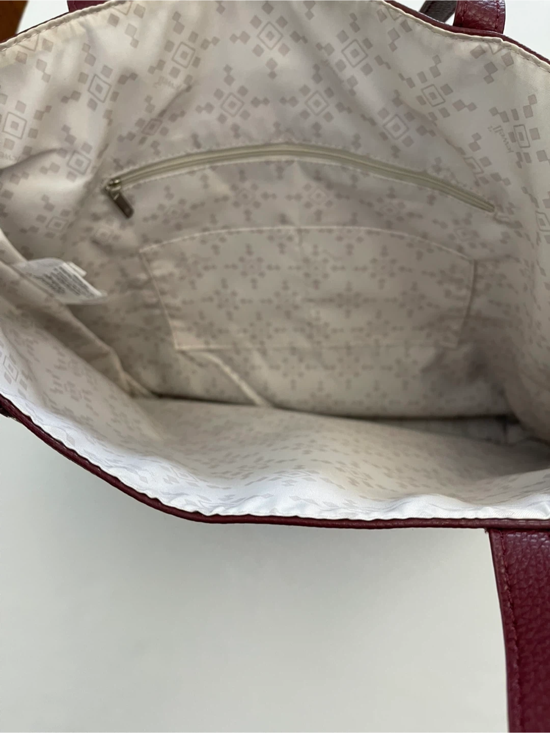 A lovely burgundy tote bag from Jewell by Thirty-One! It's in great condition and ready for a new owner. Perfect for carrying your essentials, whether you're heading to work, running errands, or meeting friends for coffee. This was only ever used for display purposes so it’s essentially brand new!