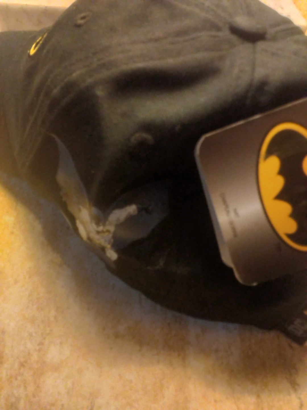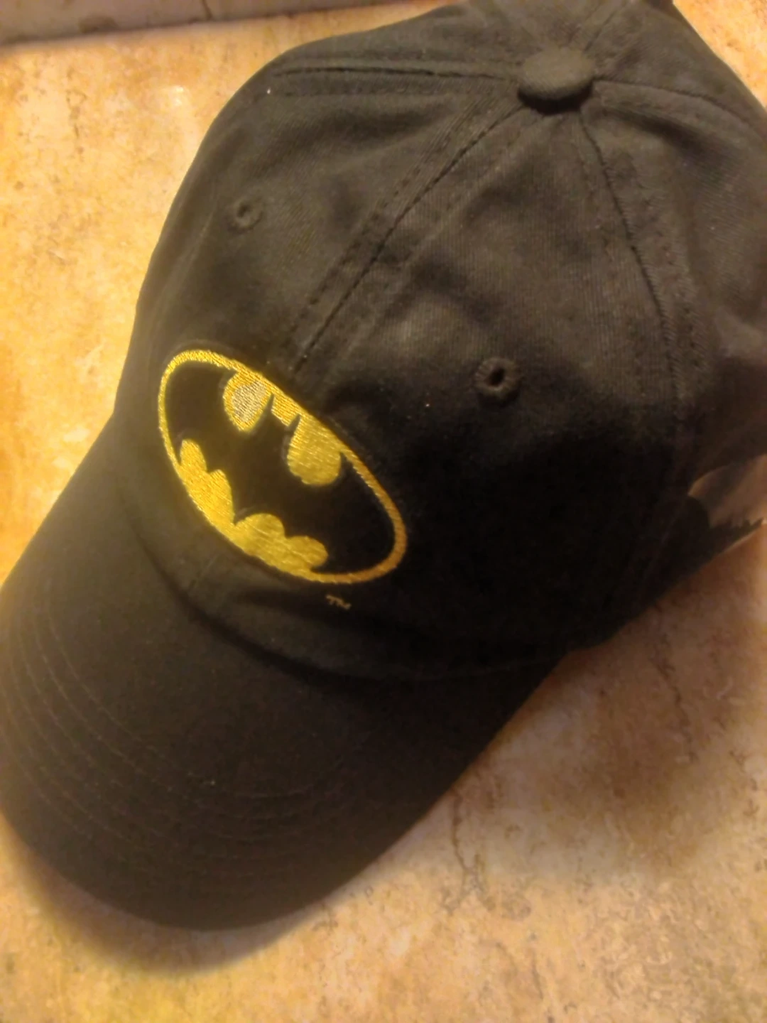 I'm selling a black baseball cap with the Batman logo on the front. It's in great condition and ready for a new owner!