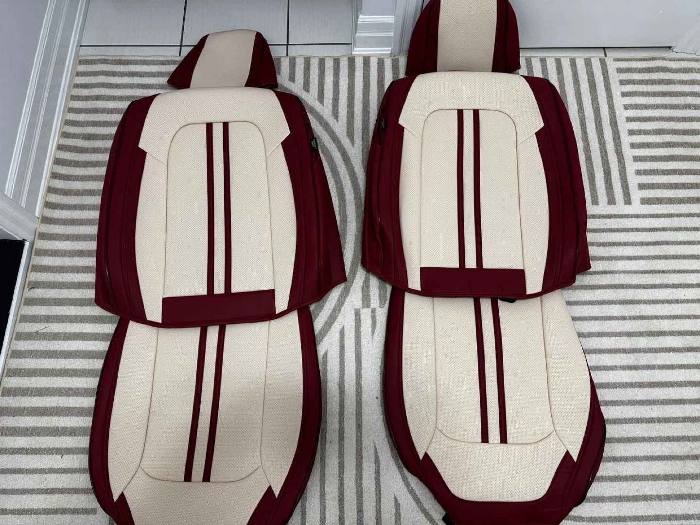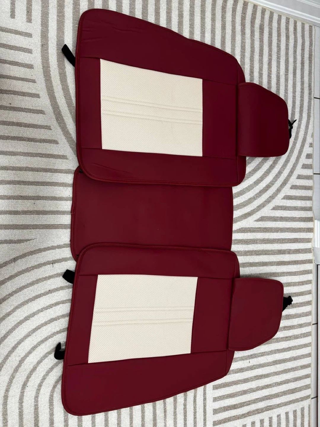 π Universal Leather Car Seat Covers β Full Set (5PCS) β Burgundy & Beige β NEW β $130