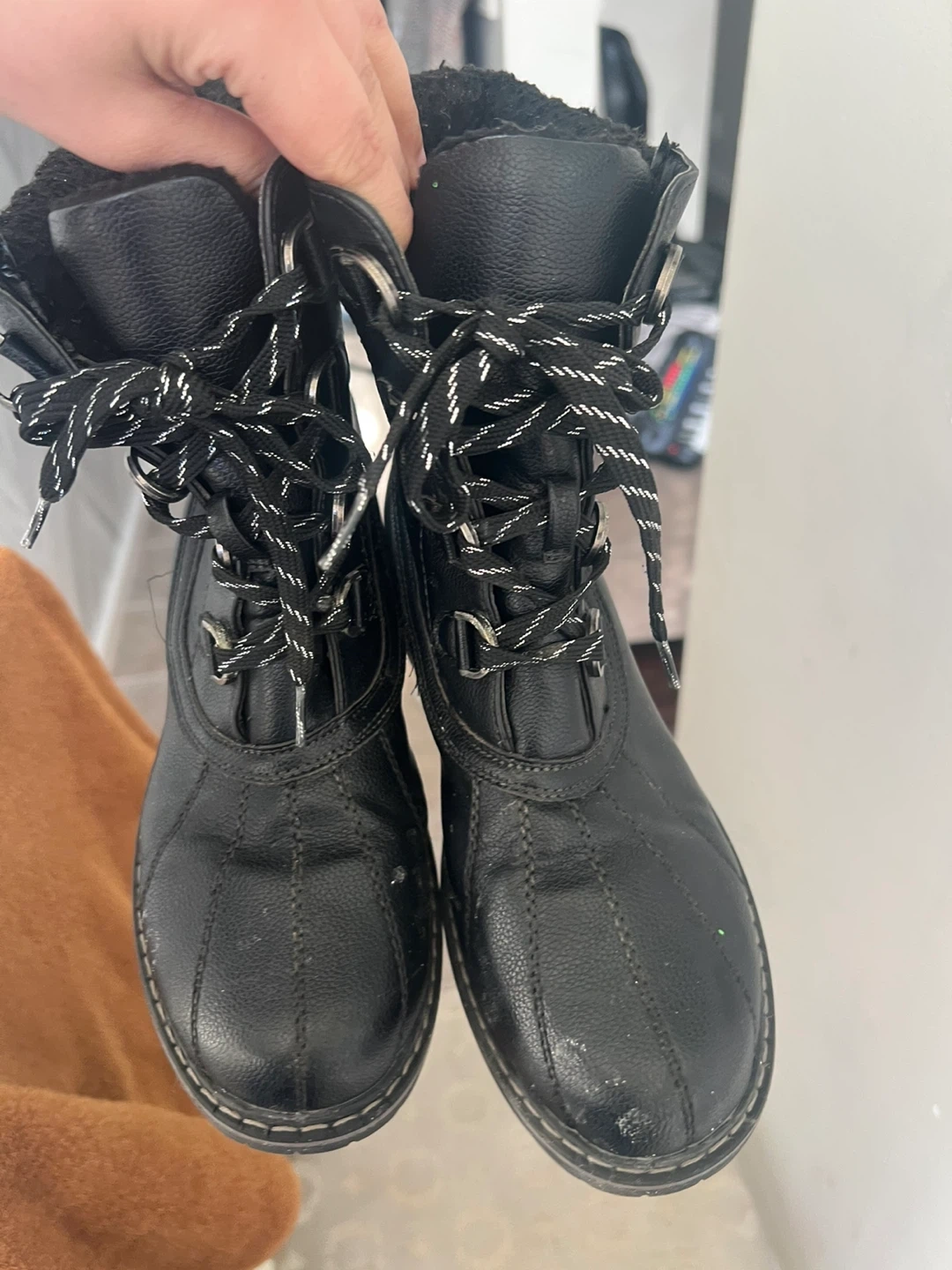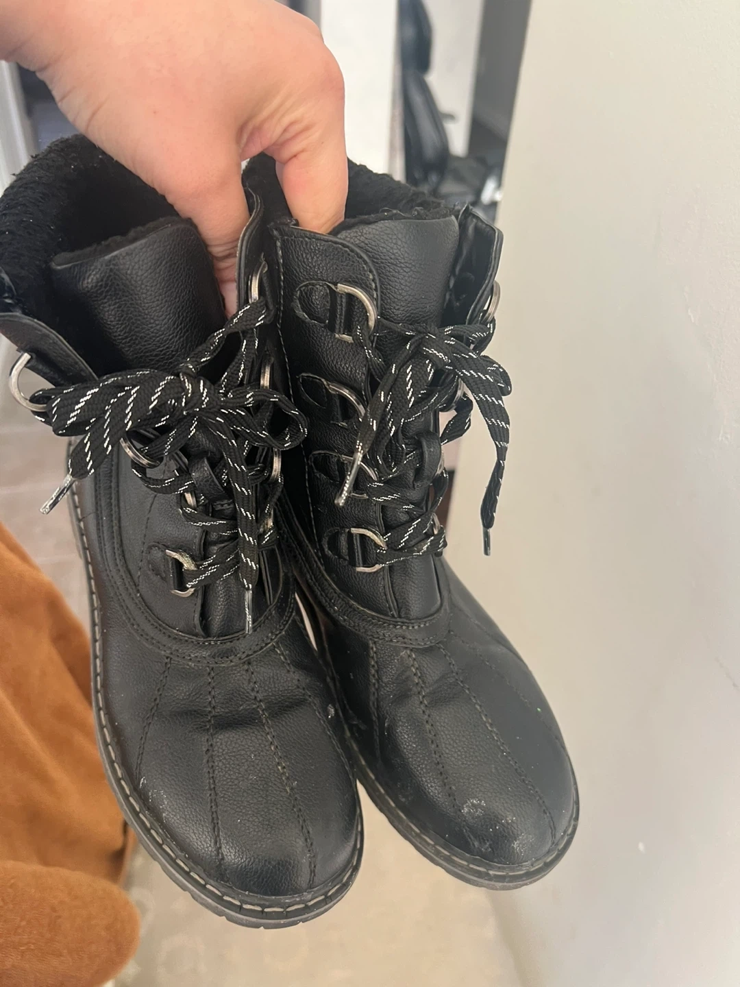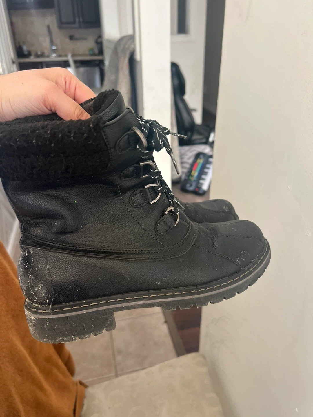 Selling a pair of black winter boots in size 8. They're in good condition and ready to keep your feet warm this winter season!