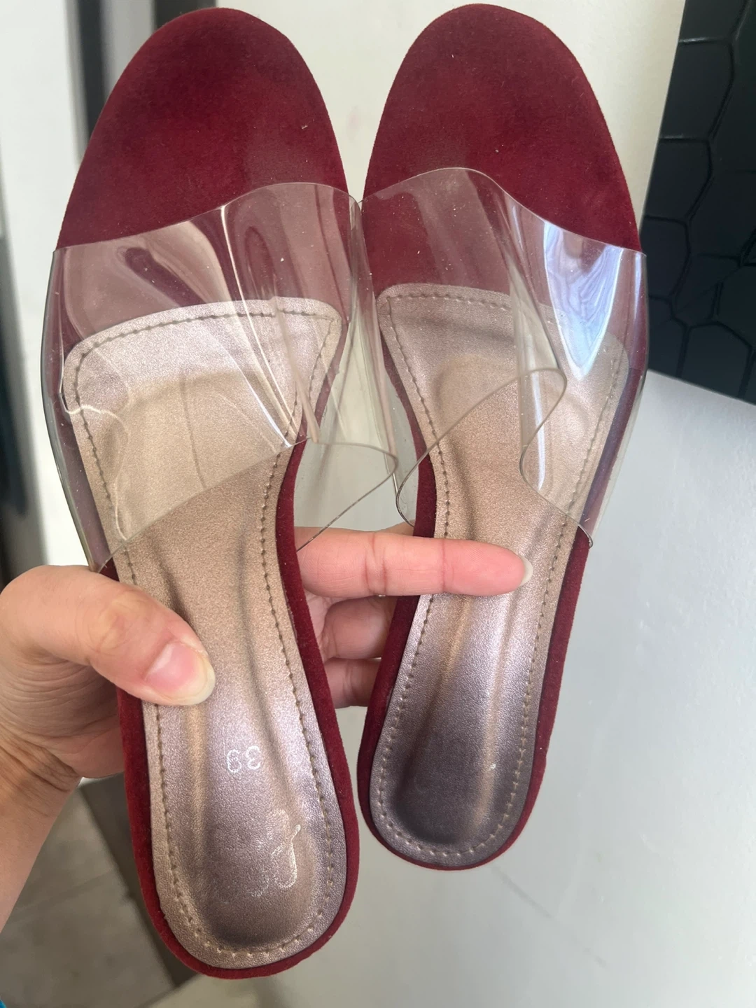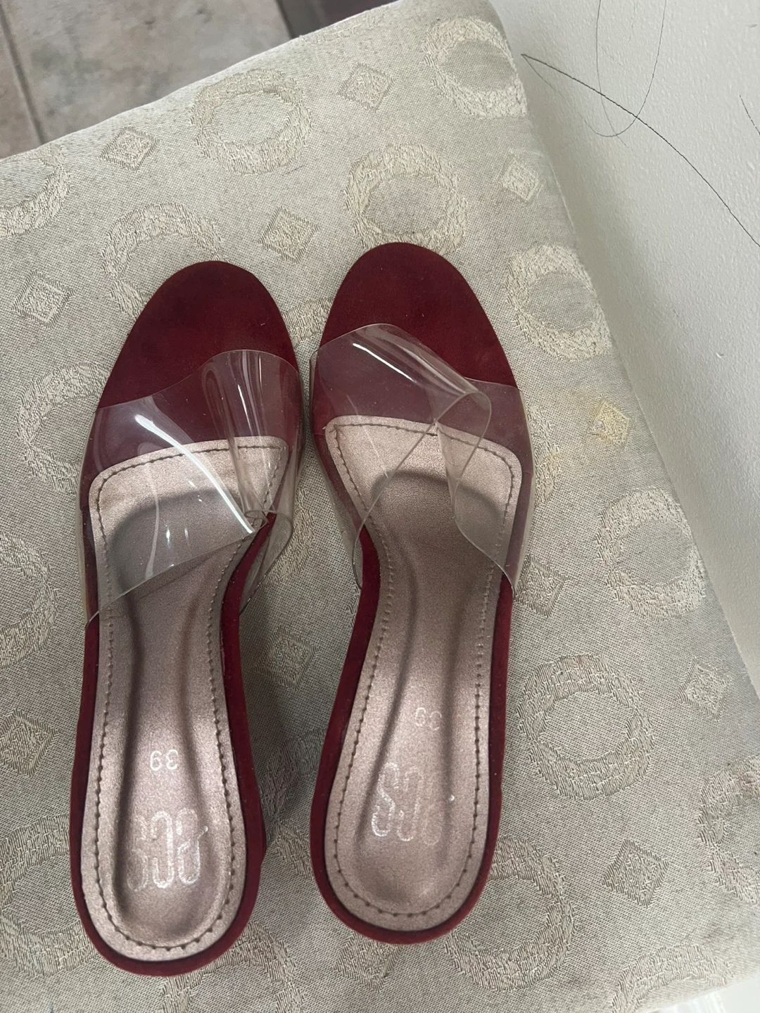 These burgundy heels are in great condition and ready for a new home! They are a size 39 and feature a clear strap detail.