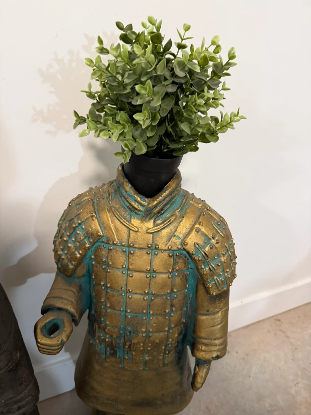 This is a unique terracotta army warrior statue that can also be used as a planter. It's a great piece for adding character to your home or garden. Kneeling solider is 25” standing ones are 30”